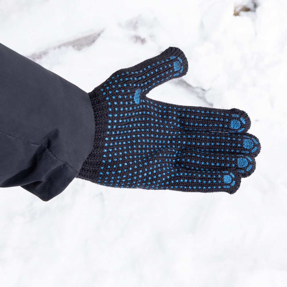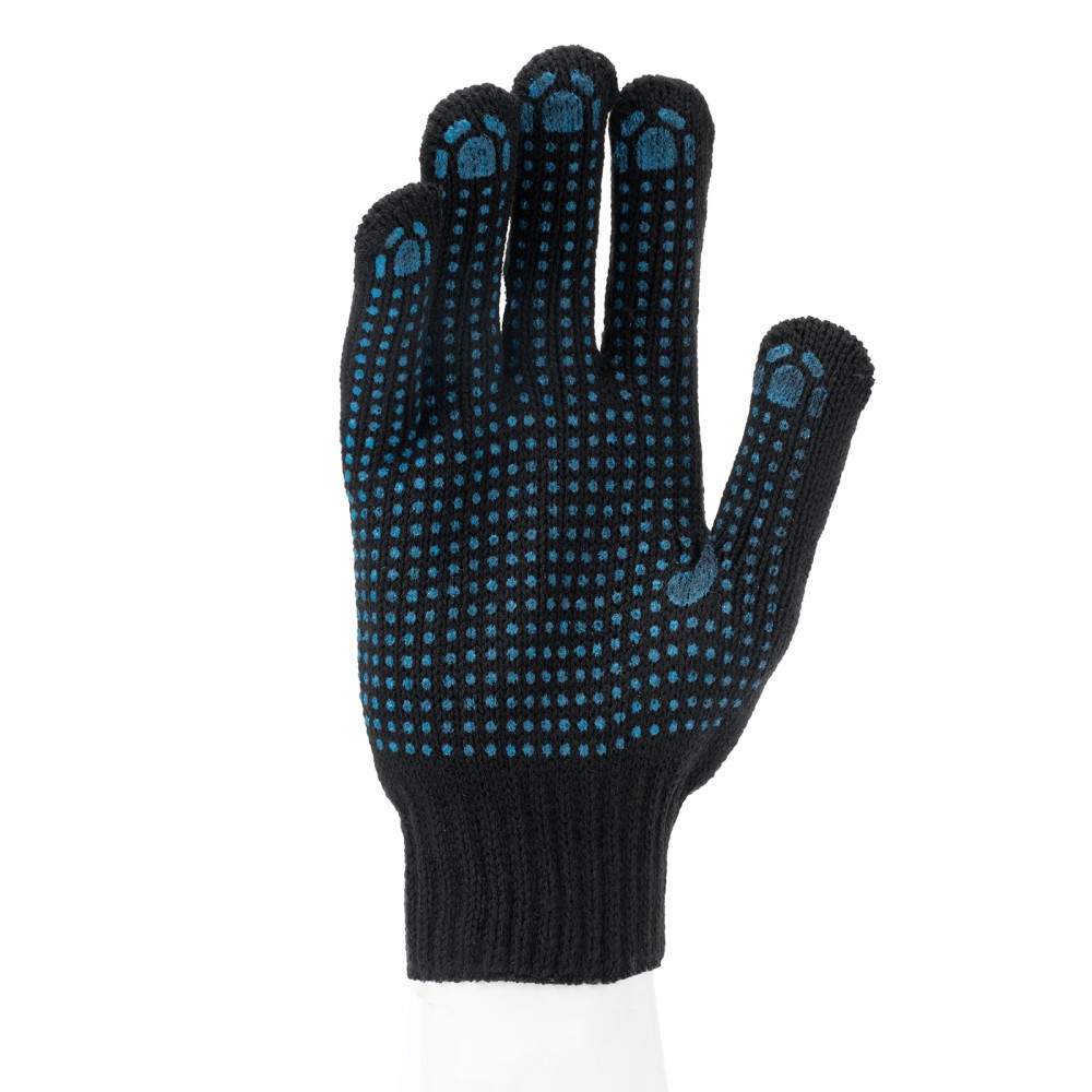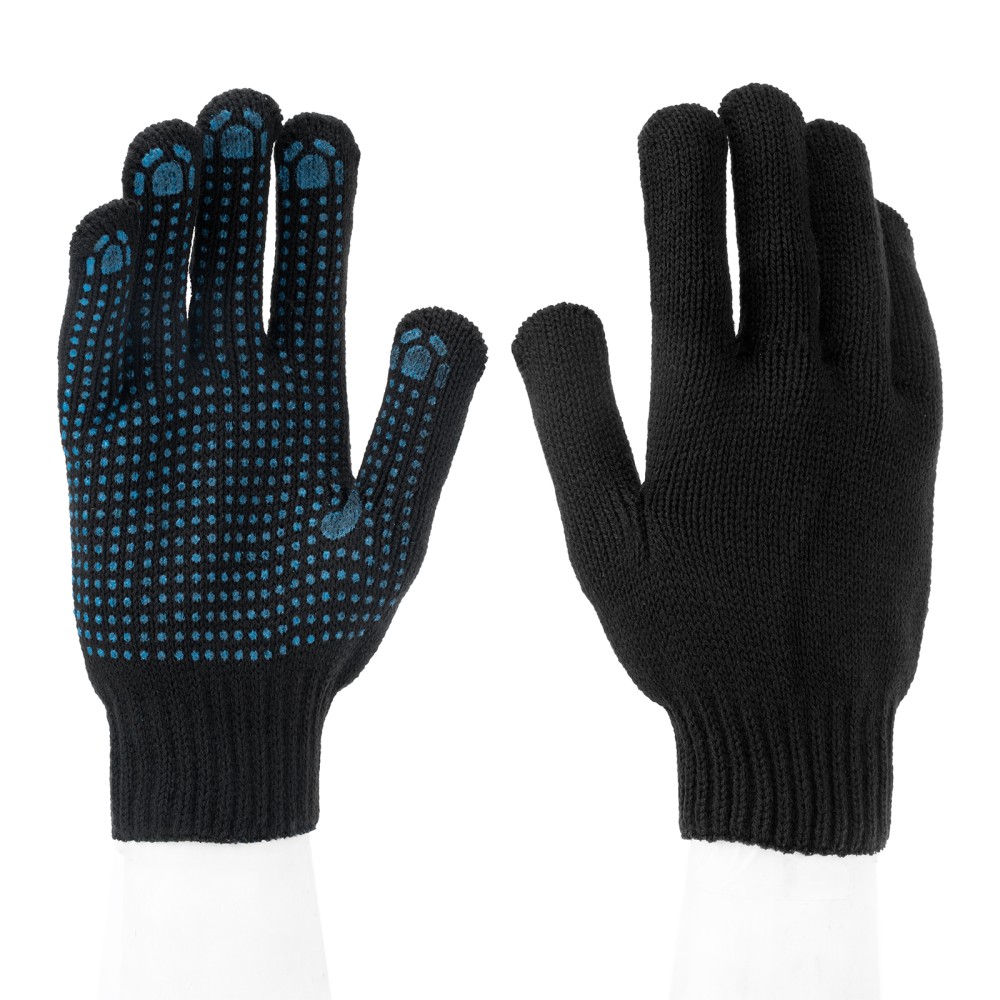 Трикотажные перчатки Сибртех 67701, содержащие акрил, с ПВХ-покрытием «Точка», 7 класса вязки, защищают руки от образования царапин, ссадин и мозолей. Могут использоваться при низких температурах, поскольку их основа на 70% состоит из акрила. Перчатки будут полезны на строительной площадке, складе, в автосервисе, а также дома или на даче.ПреимуществаДолговечность — перчатки плотной вязки изготовлены из высококачественных материалов, покрытие из ПВХ защищает их от истирания.Антискользящие свойства — на ладонную часть нанесено точечное ПВХ-покрытие, обеспечивающее надежный захват инструментов и других предметов.Гипоаллергенность — работа в перчатках безвредна для здоровья.