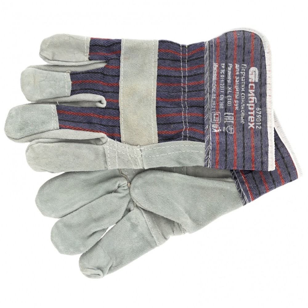 Комбинированные спилковые перчатки Сибртех 679012 размера XL используются во время строительных и погрузочно-разгрузочных работ. Предохраняют руки от механических повреждений и загрязнений.ПреимуществаИзготовлены из коровьего спилка, полиэстера и х/б ткани, поэтому устойчивы к разрывам и проколам.Приятны на ощупь и не доставляют дискомфорт во время ношения.Благодаря манжетам защищают не только кисти рук, но и запястья.