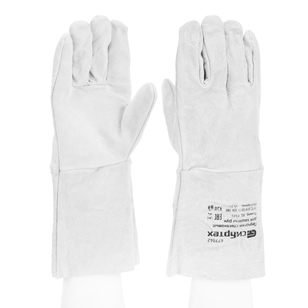 Cпилковые перчатки Сибртех 679042 с манжетой, размера XL, применяются для защиты рук во время выполнения строительных, садовых и других работ. Предотвращают появление порезов, царапин и мозолей. Могут использоваться как в быту, так и в профессиональной деятельности. ПреимуществаНадежная защита — высокие манжеты-краги предохраняют предплечья от травмирования.Прочность и долговечность — перчатки из говяжьего спилка устойчивы к механическим повреждениям и износу.Комфортная работа — мягкий материал перчаток приятен на ощупь.