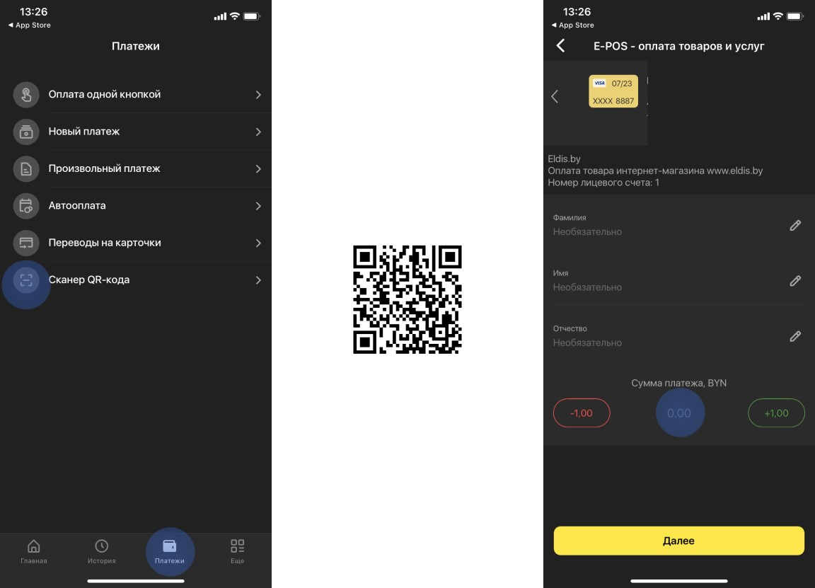 3.Произвольный платеж по QR-коду. Данный вариант возможен при самовывозе.