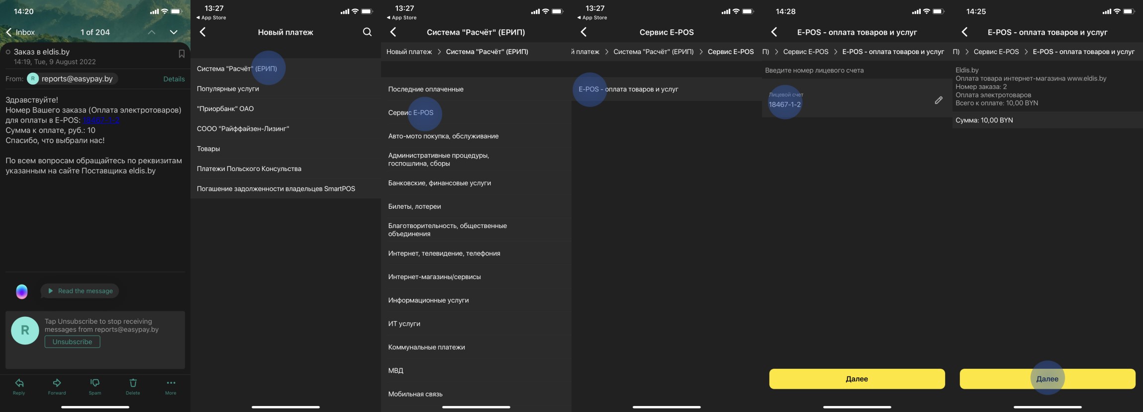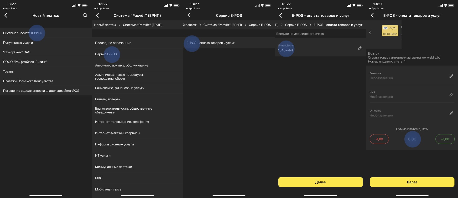 Через систему ЕРИП (E-POS)