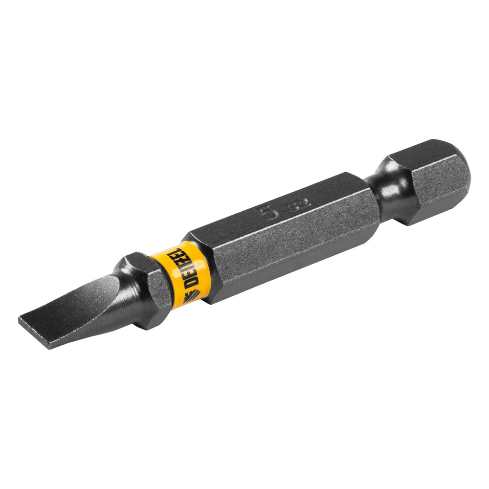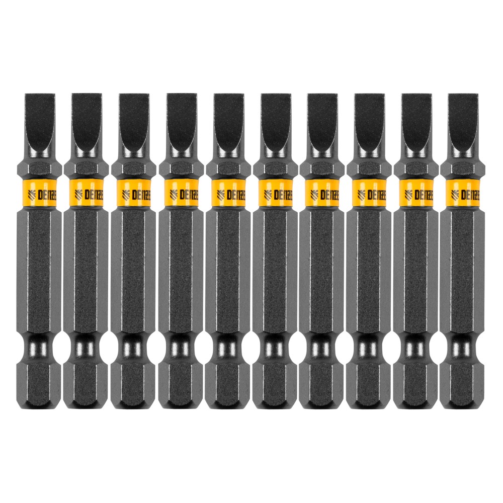 Набор бит SL 5,0 х 50 мм Denzel 11659 включает в себя 10 сменных насадок из стали S2 для шуруповертов и отверток-адаптеров с присоединительным шестигранником 1/4". Биты со шлицами «минус» размером 5 мм применяются при монтаже и демонтаже резьбовых соединений: винтов, саморезов и др.ПреимуществаУстойчивость к деформации при высоких нагрузках — биты изготовлены из японской легированной стали S2 и закалены до твердости 58 HRC.Высокоточное исполнение — оптимальная геометрия шлица и максимальный контроль на производстве в Тайване позволили добиться выверенности каждой биты и предотвратить проскальзывание рабочей части в головке крепежа.Удобная эксплуатация — намагниченный шлиц облегчает работу и позволяет направлять шуруповерт с насаженным крепежом одной рукой, а другой придерживать закрепляемую деталь.Антикоррозионные свойства — никелированное покрытие увеличивает срок службы насадок.Защита от подделок — цветное кольцо с логотипом ТМ Denzel на каждой бите подтверждает оригинальность товара.Удобная упаковка — набор поставляется в двойном блистере с европодвесом.