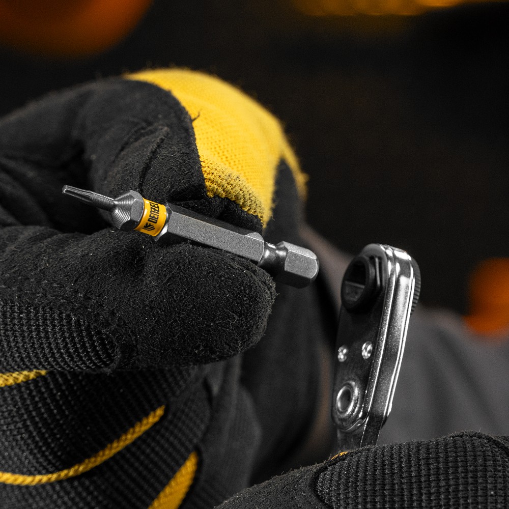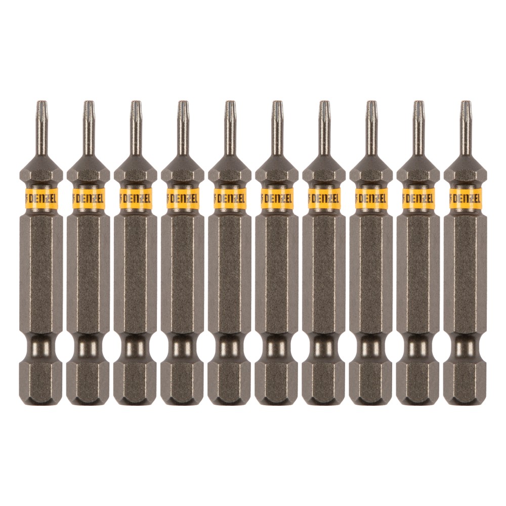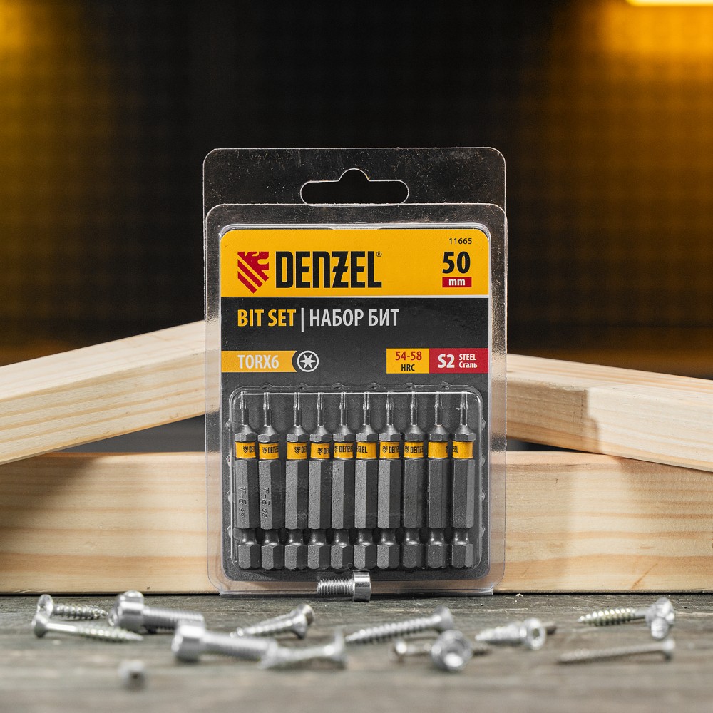 Набор бит TORX 6 х 50 мм Denzel 11665 включает в себя 10 насадок с хвостовиком 1/4", из стали S2, для работы с шуруповертами. Шлиц в форме звезды служит для быстрого монтажа и демонтажа винтов при сборке бытовой техники и электроприборов. Набор универсален и подходит как для бытового, так и для профессионального применения. Благодаря конструктивной особенности лучи «звезды» надежно сцепляются с крепежом, нагрузка равномерно распределяется на все грани, это снижает риск соскальзывания биты и обеспечивает высокую точность работ.ПреимуществаДолговечность и надежность — биты сделаны из японской легированной стали S2 и закалены до твердости 58 HRC, поэтому устойчивы к высоким нагрузкам.Высокое качество — точное исполнение шлица и максимальный контроль на производстве в Тайване позволяют добиться выверенности каждой биты и предотвратить проскальзывание рабочей части в головке крепежа.Удобная работа — намагниченный шлиц позволяет направлять шуруповерт с насаженным крепежом одной рукой, а другой придерживать закрепляемую деталь.Антикоррозионные свойства — защитное никелированное покрытие продлевает срок службы насадок.Каждая бита защищена от подделок — об этом свидетельствует цветное кольцо с логотипом ТМ Denzel.Удобное хранение — оснастка поставляется в двойном блистере с европодвесом.Большой запас — набора из 10 штук достаточно для снабжения бригады работников.