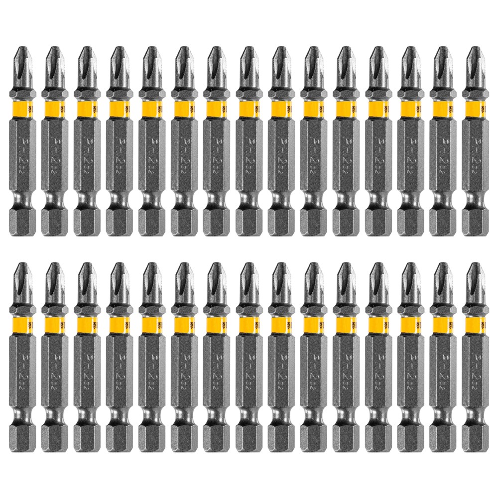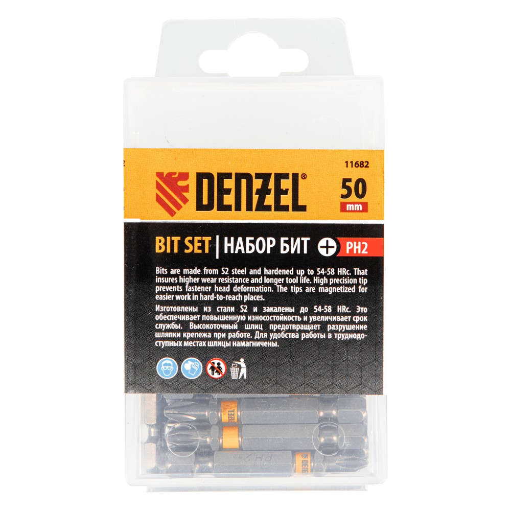 Бита PH2х50, сталь легированная S2, 30 шт., шестигранный профиль, пластиковая коробка, Е 6,3 Denzel