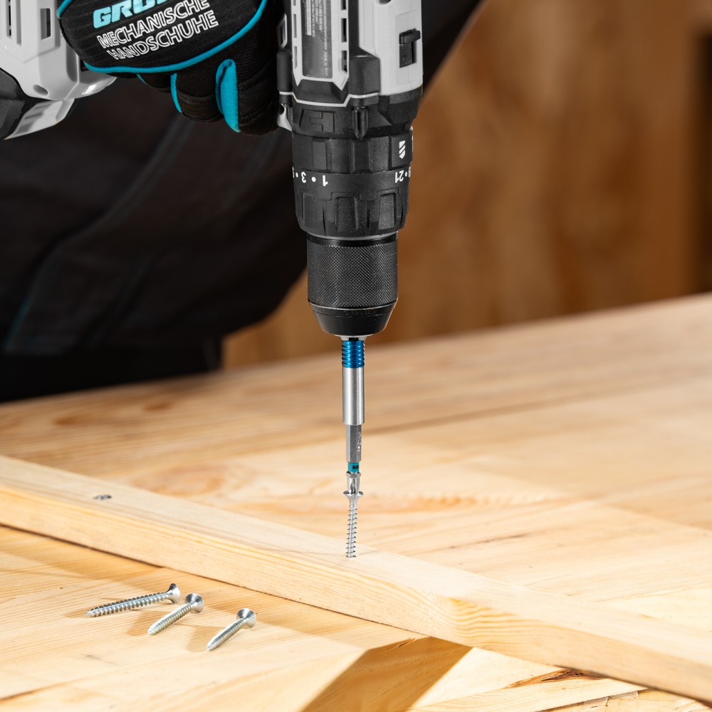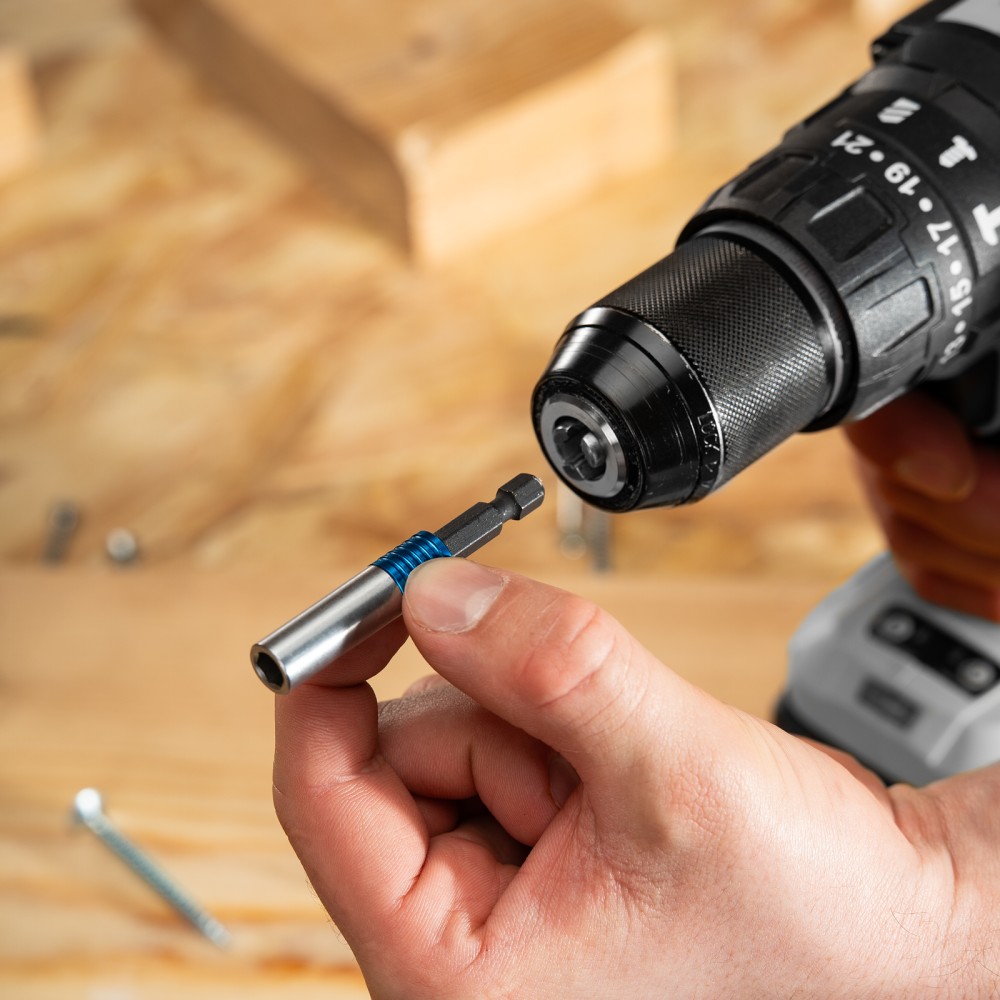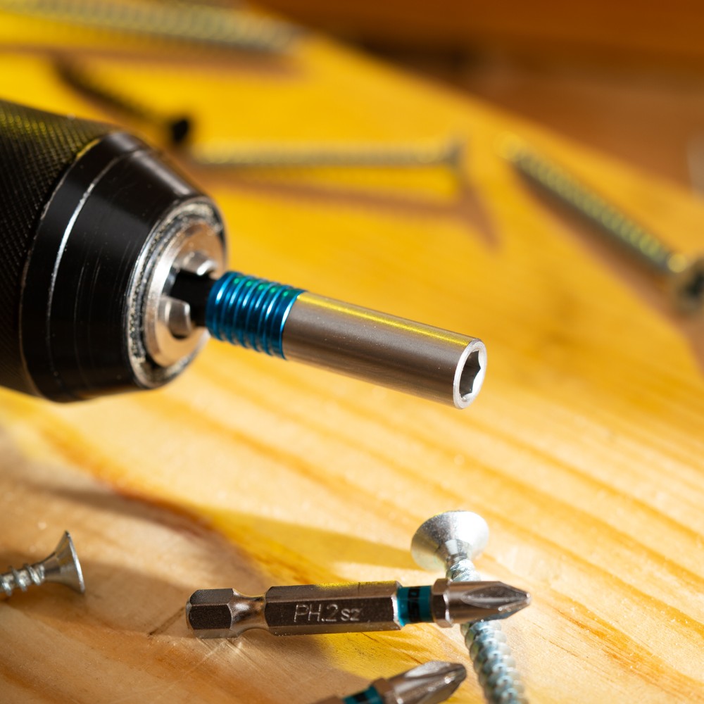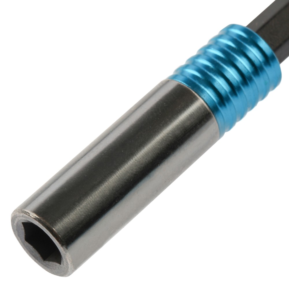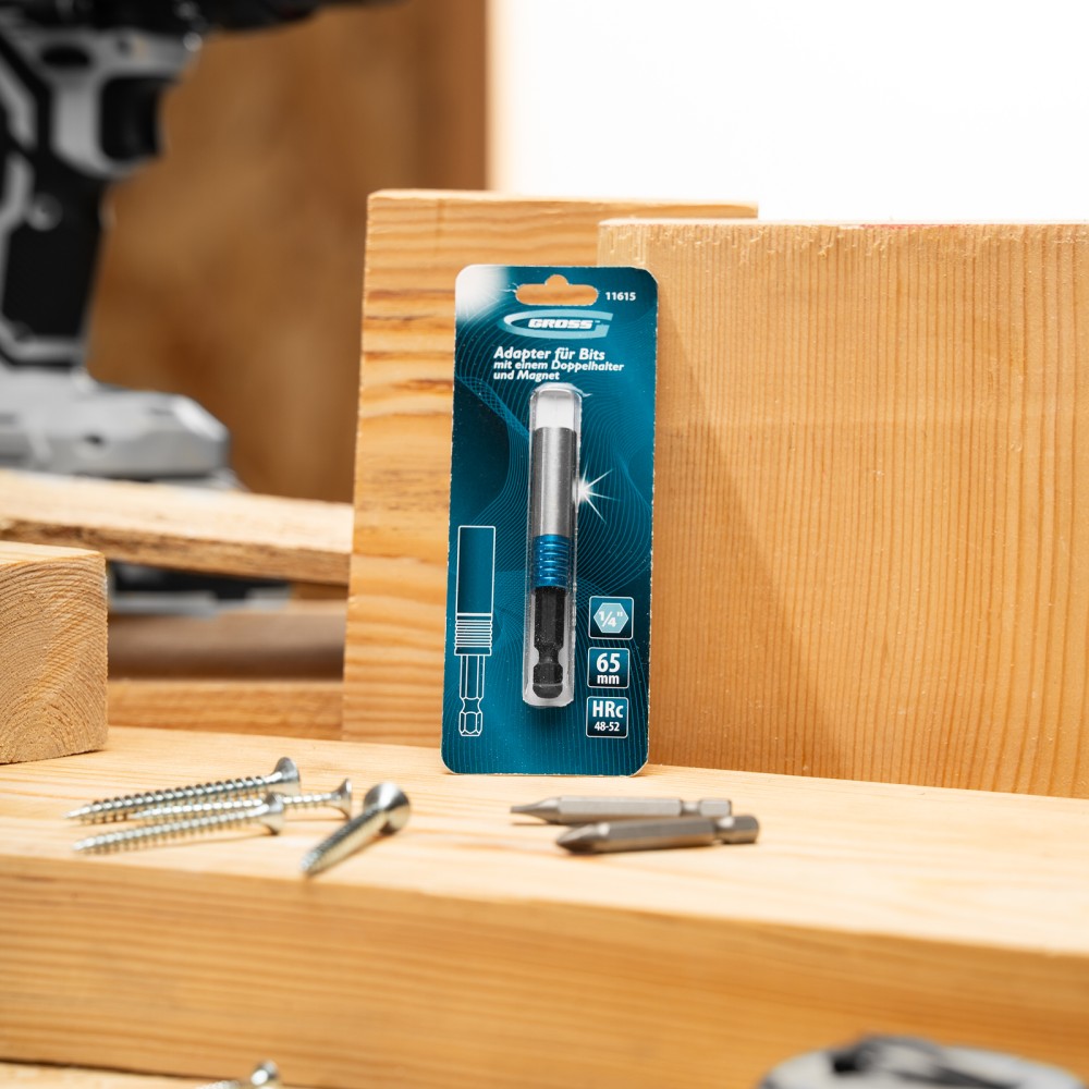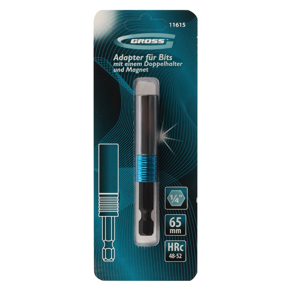Адаптер для бит Gross 11615 с двойным держателем и магнитом, длиной 65 мм, с присоединительным размером 1/4″, позволяет надежно зафиксировать и быстро заменить оснастку. Устанавливается в патрон шуруповерта, используется для монтажа и демонтажа резьбовых соединений. Адаптер подойдет как для домашнего, так и для профессионального использования: сборки мебели, выполнения строительных и ремонтных работ.ПреимуществаПовышенная износостойкость и долговечность — адаптер изготовлен из хромованадиевой стали твердостью 48-52 HRC.Надежная фиксация — благодаря быстрозажимному механизму и встроенному магниту бита не выпадает во время работы.Комфортная работа — вращающаяся муфта позволяет удерживать битодержатель, чтобы придать устойчивости крепежу.Система Quick-Lock — бита освобождается одним движением, достаточно потянуть за муфту вниз.