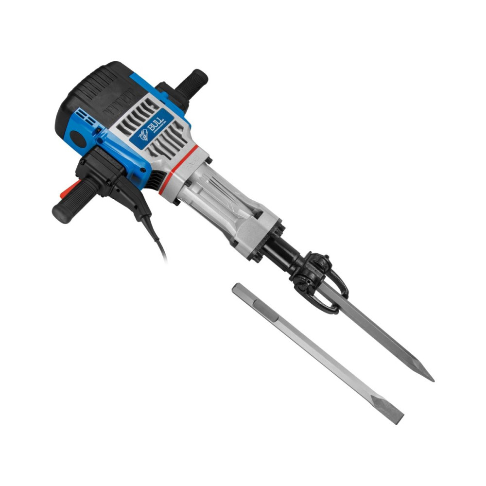 Отбойный молоток предназначен для дробления бетона, слома бетонных покрытий, проделывания проёмов, а также ведения самых сложных демонтажных работ. Шестигранный патрон 28,6 мм позволяет надежно фиксировать долота, а также обеспечить удобство смены. Модель обладает особой системой системой виброгашения, что делает работу менее утомительной для оператора. Корпус редуктора изготовлен из магниевого сплава, что обеспечивает дополнительную защиту внутренних узлов, а также лучший отвод тепла. Обладает оптимальным удобством использования: эргономичные рукоятки с мягкой накладкой и низко расположенный центр тяжести инструмента обеспечивают оптимальный комфорт в использовании. Отбойный молоток BULL также имеет морозоустойчивый резиновый кабель 5 м.