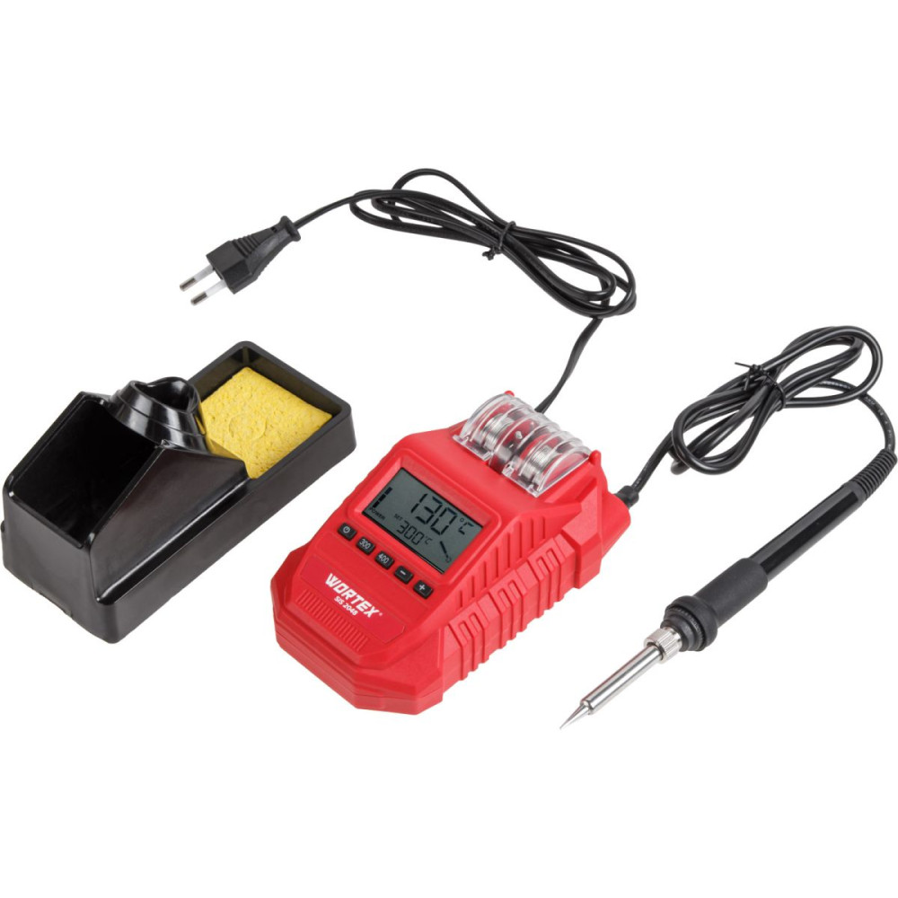 Паяльная станция WORTEX предназначена для пайки различных материалов. Инструмент обладает высокой скоростью нагрева и электронной регулировкой температуры. На этом устройстве, за счёт преобразования напряжения, предусмотрена антистатическая защита. Для комфортной работы пользователя в данной модели мы добились минимального колебания заданной температуры. Также следует отметить, что в корпусе данной модели предусмотрено место для хранения припоя и двух медных жал с высококачественным хромовым покрытием.