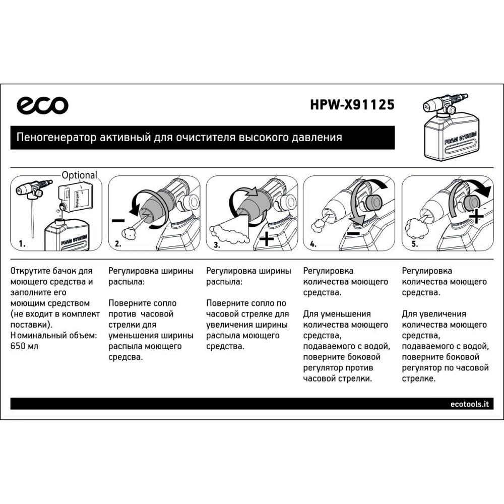 Пеногенератор активный предназначен для очистителей высокого давления ECO.