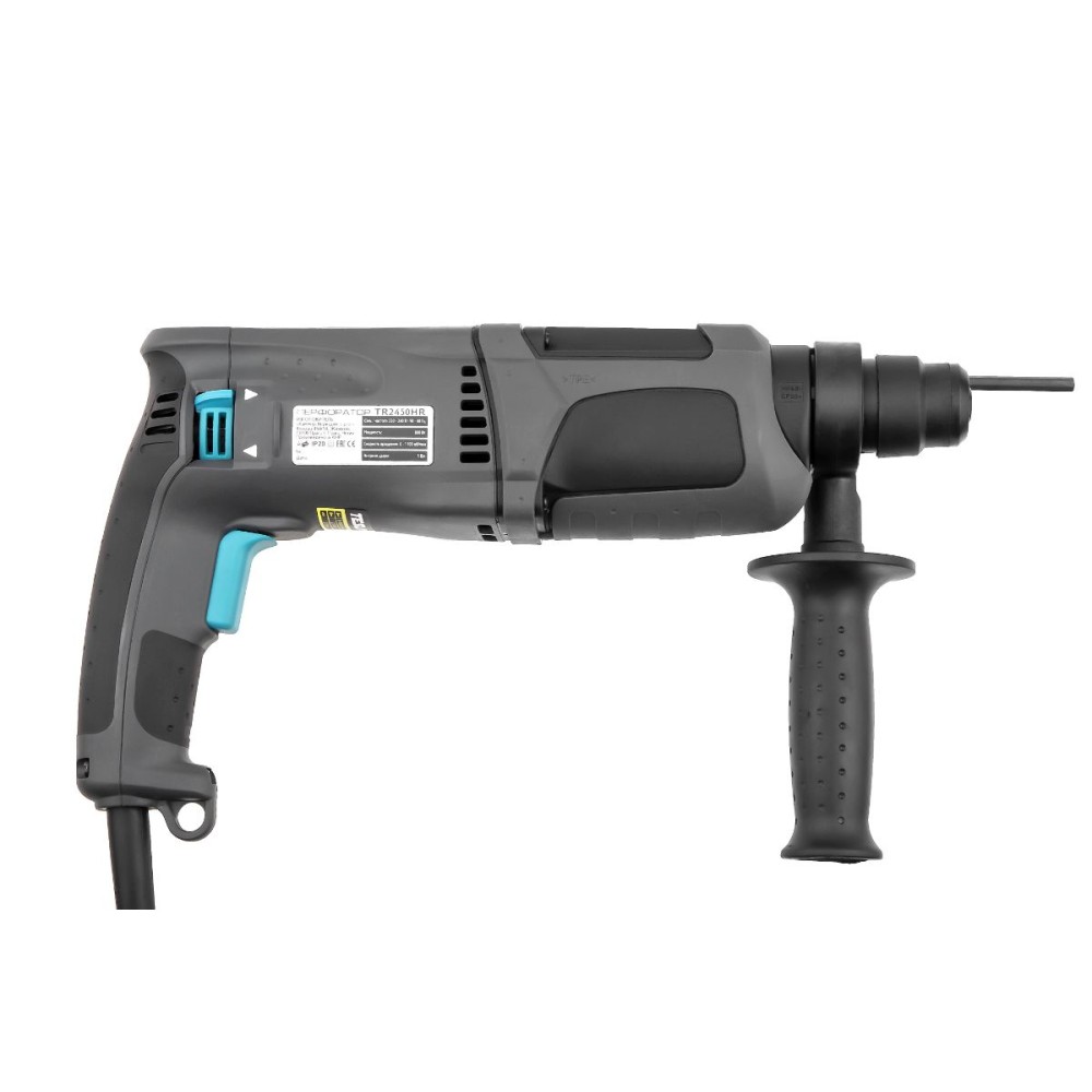 - Трехрежимный перфоратор TR2450HR оснащен двигателем мощностью 800 Вт, что позволяет работать с бурами диаметром до 26 мм.