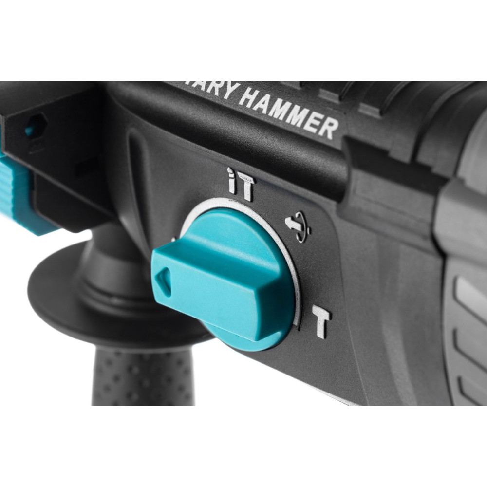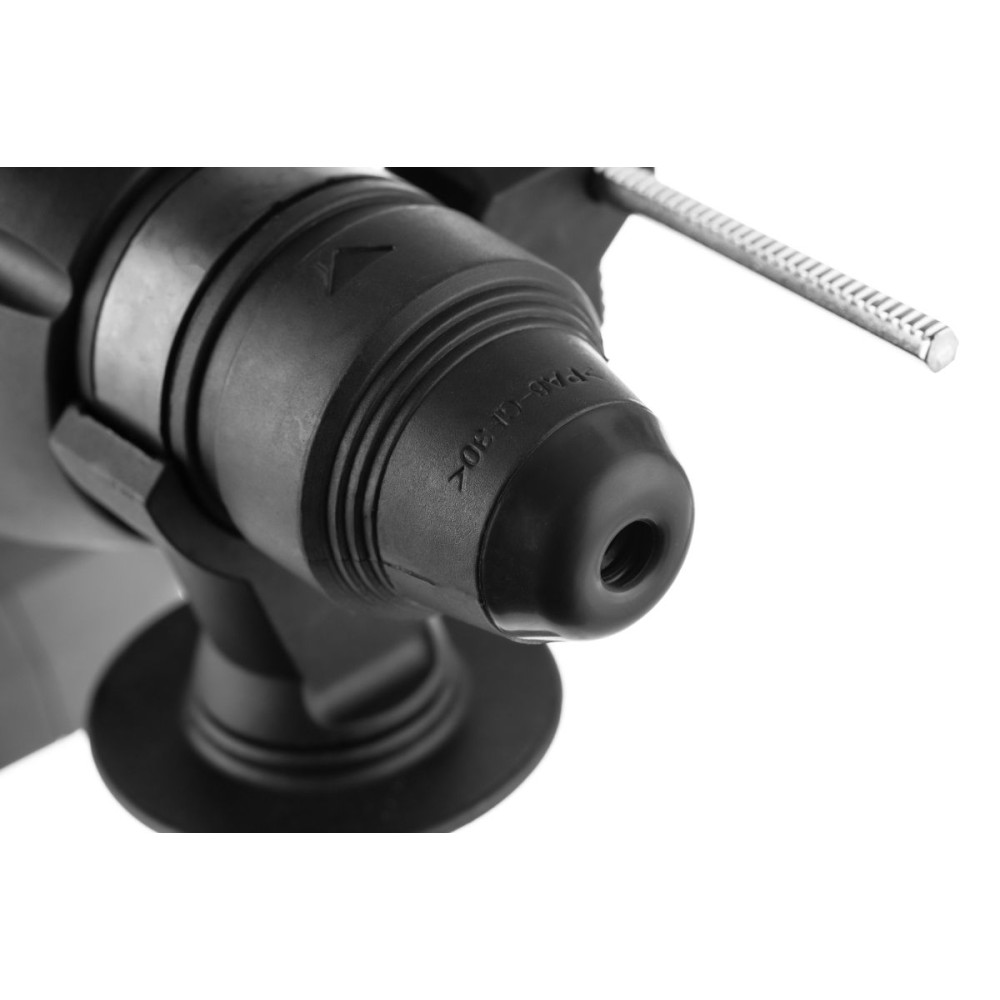 - Для максимального комфорта в работе перфоратор оснащен дополнительной рукояткой с встроенным глубиномером.