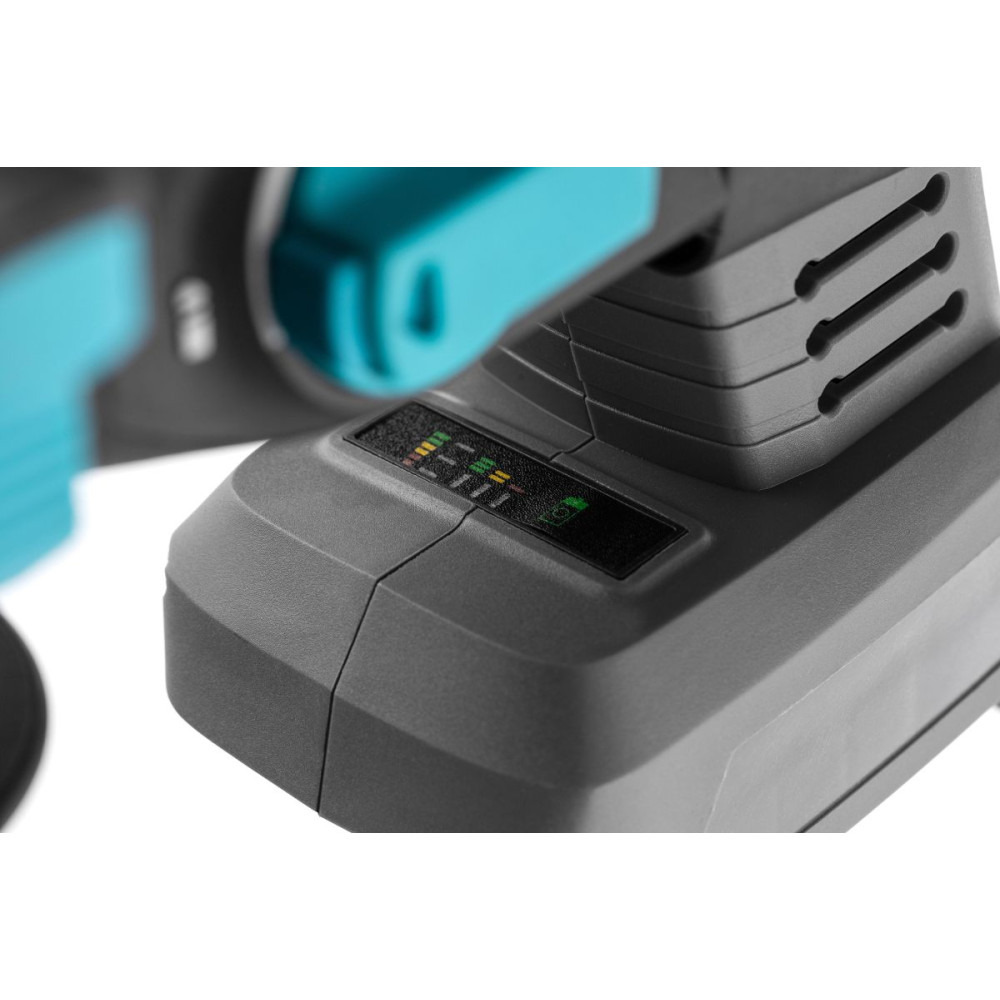 - Особенностью модели является бесщеточный двигатель, который определяет малый вес и линейные размеры, а также высокую производительность и ресурс инстрмента.