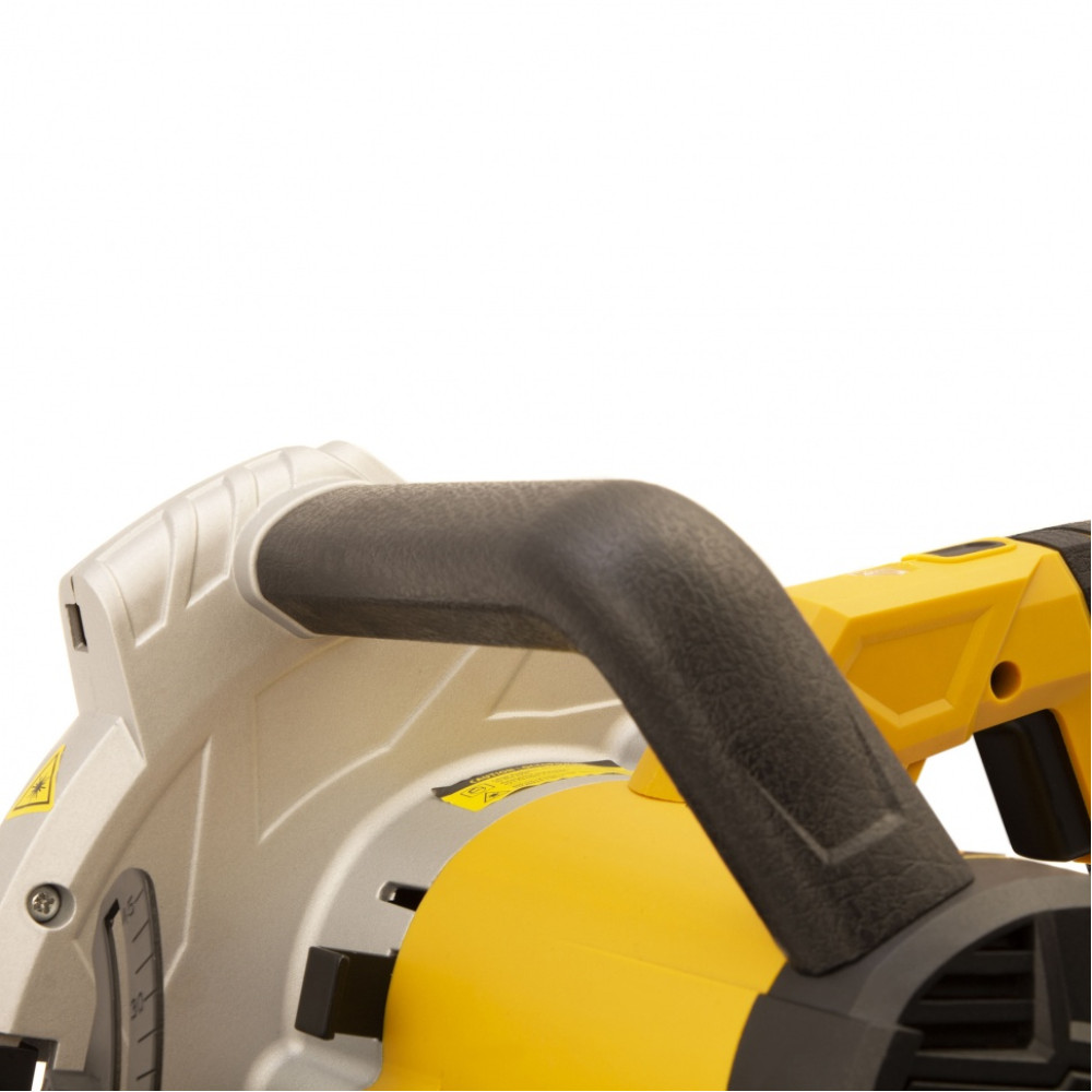 - Высокая точность — лазерный указатель, показывающий линию предстоящего среза, и стальная параллельная направляющая помогают осуществлять ровные прямые пропилы без дополнительной разметки.
