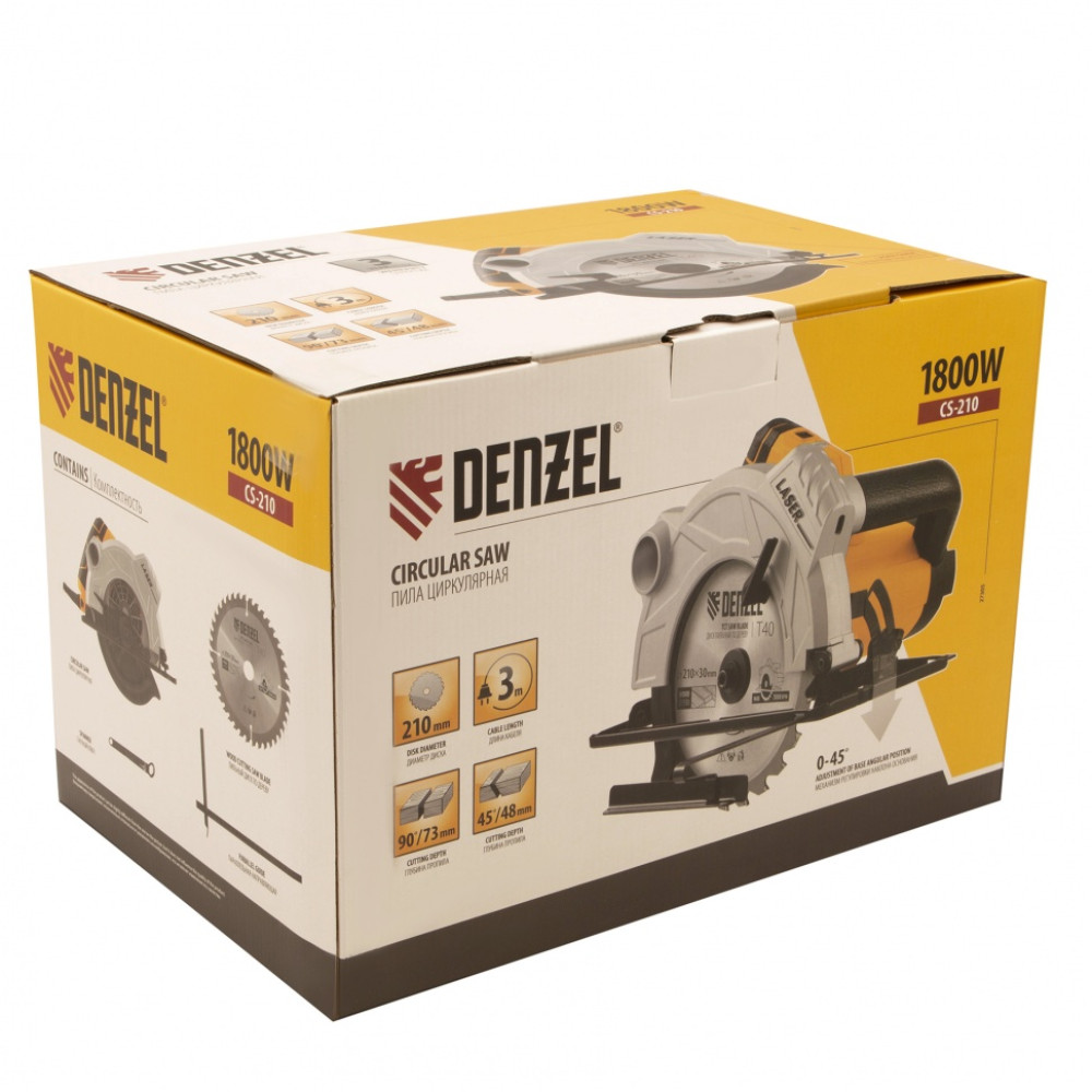 Циркулярная пила Denzel CS-210 27305 — мощная и производительная, имеет максимальную глубину реза в линейке Denzel CS — 73 мм, что обеспечивает эффективную работу с досками, фанерой, ДСП и другими листовыми древесными материалами.