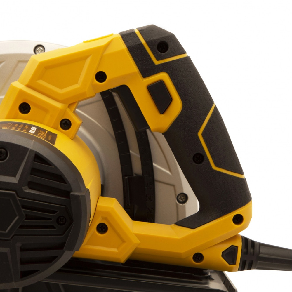Справляться с поставленными задачами помогают коллекторный двигатель мощностью 1,8 кВт, который обеспечивает частоту вращения 5000 об/мин, и пильный диск 210 х 3 мм. Глубина пропила регулируется до 73 мм, что позволяет работать с материалами разной толщины.