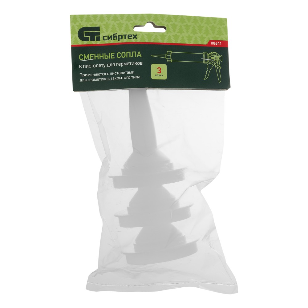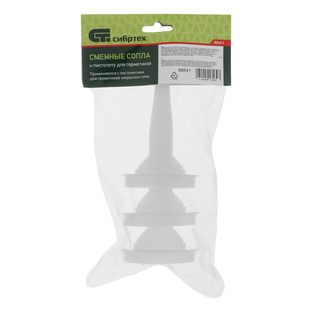 Сменные сопла к пистолету Сибртех 88641, 3 шт. в упаковке, позволяют точно дозировать и равномерно наносить герметик. Изделия совместимы с пистолетами закрытого типа 886475 и 886485. Благодаря конусообразной форме удобны для нанесения состава на стыках стен с ванной или раковиной, заполнения трещин и щелей в углах и труднодоступных местах. Пригодятся во время выполнения ремонтных и сантехнических работ.ПреимуществаДолговечность — сопла изготовлены из химически и влагостойкого полиэтилена.Отсутствие протечек — сопла надежно фиксируются на корпусе пистолета.Удобное дозирование наносимого состава — кончики насадок легко обрезаются до нужного диаметра.Продуманная комплектация — в упаковке 3 сопла, которые можно использовать для герметизации швов разной ширины или оставить про запас.