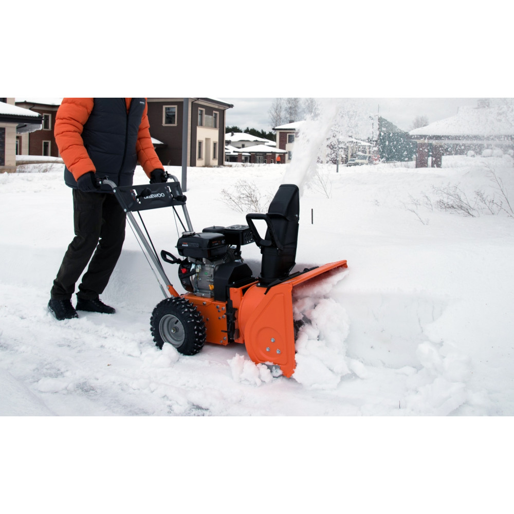 - Желоб из прочного ABS-пластика устойчив к низким температурам и меняет угол выброса до 190˚ для быстрой и эффективной очистки территории.