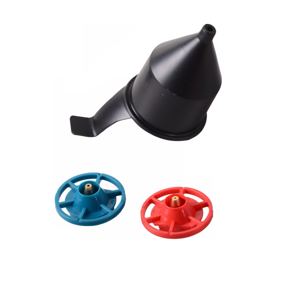 - Форма факела регулируется с помощью переключателя и поворота распылительной головки, что позволяет адаптироваться к различным условиям работы. В набор входят три сопла диаметром 1 мм, 1.8 мм и 2.5 мм, что расширяет возможности применения устройства.