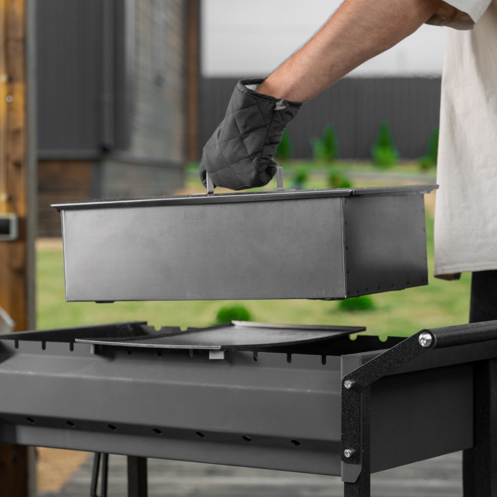 Двухъярусная коптильня Palisad Camping 69527 размером 500 х 270 х 175 мм, с поддоном, на ножках, предназначена для горячего копчения мяса, рыбы и птицы. Ее можно брать с собой на природу или устанавливать на даче для приготовления деликатесов на открытом воздухе. Конструкцией предусмотрены ножки, поэтому для установки коптильни не требуется мангал или кирпичи.ПреимуществаПрочность и долговечность — коптильня из жаропрочной углеродистой стали толщиной 0,8 мм устойчива к механическим воздействиям.Высокие вкусовые качества приготовленной пищи — поддон препятствует попаданию жира на щепу, что исключает возникновение неприятного запаха и искажение вкуса еды.Идеальные условия приготовления — крышка-слайдер позволяет поддерживать внутри коптильни необходимый температурный режим и сохранять ароматный дым.Простой уход — благодаря поддону жир не попадает на стенки коптильни, что облегчает ее очистку.Удобное использование — ручка не нагревается, поэтому приспособление можно снимать с огня, не опасаясь обжечься, а двухъярусная решетка позволяет за один раз приготовить в 2 раза больше еды, чем в обычной коптильне.