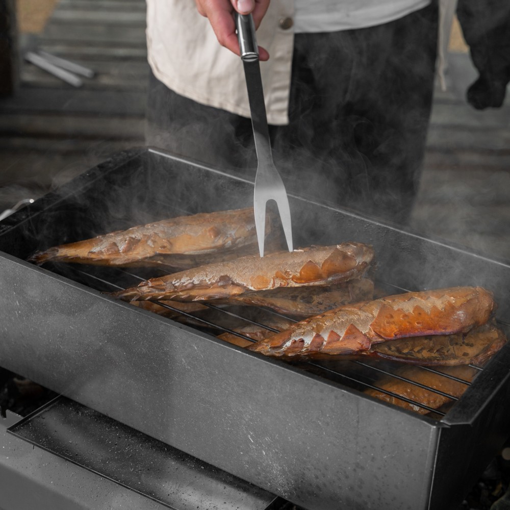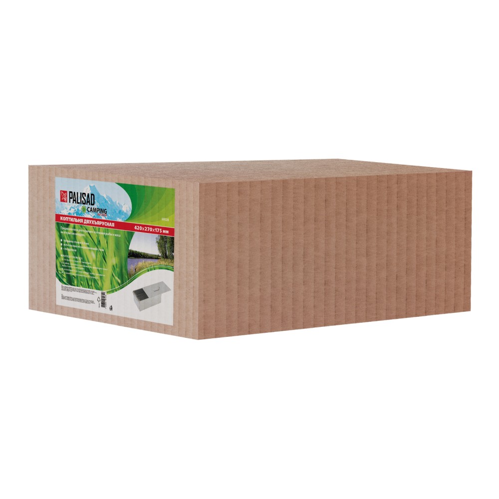 Двухъярусная коптильня Palisad Camping 69528 размером 420 х 270 х 175 мм, из нержавеющей стали толщиной 0,8 мм, с поддоном, используется для быстрого приготовления мяса, рыбы и птицы методом горячего копчения. Предназначена для работы на открытом воздухе, а значит, ее можно поставить на дачном и придомовом участке, взять с собой на рыбалку или охоту.ПреимуществаПрочность и долговечность — коптильня из нержавеющей стали со стенками толщиной 0,8 мм устойчива к механическим воздействиям.Высокие вкусовые качества приготовленной пищи — поддон препятствует попаданию жира на щепу, что исключает возникновение неприятного запаха и искажение вкуса еды.Идеальные условия приготовления — крышка-слайдер позволяет поддерживать внутри коптильни необходимый температурный режим и сохранять ароматный дым.Простой уход — благодаря поддону жир не попадает на стенки коптильни, что облегчает ее очистку.Удобное использование — ручка не нагревается, поэтому приспособление можно снимать с огня, не опасаясь обжечься, а двухъярусная решетка позволяет за один раз приготовить в 2 раза больше еды, чем в обычной коптильне.