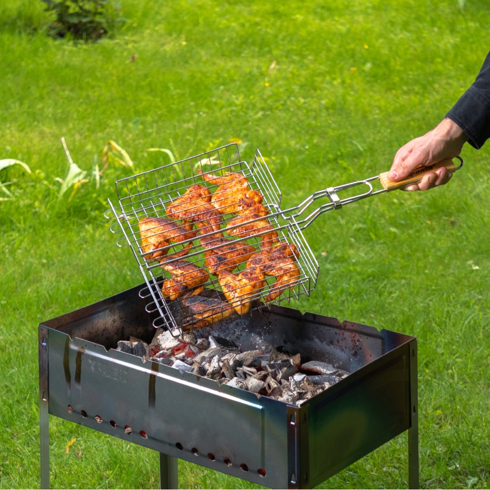 Мангал Palisad Camping 69547 размером 500 х 300 х 500 мм, с ребрами жесткости, предназначен для жарения мяса, рыбы и овощей. Его удобно использовать во время отдыха на природе или на дачном участке. Мангал изготовлен из стали толщиной 0,7 мм, что придает ему особую прочность. Рекомендуется дополнительно приобрести веер для раздувания углей Palisad Camping 69542.ПреимуществаДолговечность — мангал из жаропрочной углеродистой стали выдерживает длительное использование.Надежная конструкция — мангал усилен ребрами жесткости.Надежная фиксация шампуров — благодаря специальным прорезям они не скатываются и не падают с корпуса.Полная прожарка — отверстия для поддува обеспечивают постоянное поступление кислорода к углям, поэтому они хорошо разгораются, экономя топливо.Повышенная устойчивость — можно не опасаться, что мангал опрокинется.Сборно-разборная конструкция — изделие удобно хранить и транспортировать, а его установка занимает несколько минут.