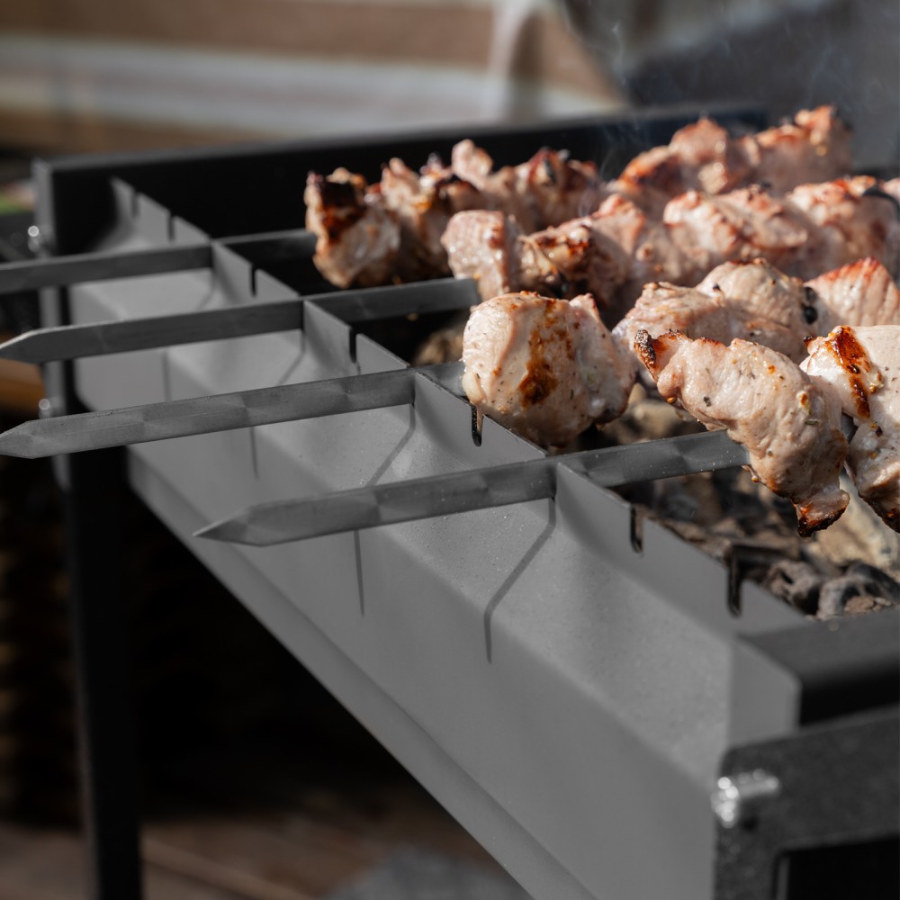 Сварной мангал Palisad Camping 69669 размером 662 х 390 х 152/805 мм, из стали толщиной 2 мм, поставляется в комплекте с кочергой. Служит для приготовления блюд из мяса, рыбы, птицы и овощей на дровах или древесных углях. Позволяет организовать пикник и комфортный отдых на дачном участке.ПреимуществаПрочность — надежная конструкция из жаропрочной углеродистой стали, усиленная ребрами жесткости, рассчитана на долгий срок службы.Долговечность — топка окрашена термостойкой краской, выдерживает нагрев до 700 °C, а на ножки нанесено защитное порошковое покрытие.Продуманная конструкция — на боковом столике можно разместить шампуры и другие аксессуары, а на нижней полке — посуду или запас топлива.Постоянный приток кислорода — отверстия в корпусе обеспечивают хороший воздухообмен, поэтому раздувать огонь не требуется.Комфортное использование — в корпусе предусмотрены прорези, благодаря которым шампуры не скатываются с мангала.Удобное перемещение — мангал снабжен ручкой и 2 колесами.Расширенная комплектация — мангал поставляется с кочергой, ее не нужно приобретать отдельно.