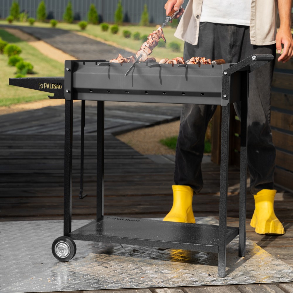 Мангал сварной на колесах, 662 х 390 х 152/805 мм, сталь 2 мм, кочерга в комплекте, Camping Palisad