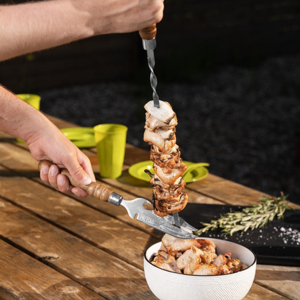 Плоский шампур Palisad Camping 69751 размером 600 х 10 х 2,5 мм выполнен из нержавеющей стали и имеет эргономичную деревянную рукоятку. Используется для приготовления шашлыков из мяса, птицы, рыбы и овощей на открытом огне. Удобно переворачивается и снимается с мангала.ПреимуществаНадежность и долговечность — шампур из нержавеющей стали не боится коррозии, за счет увеличенной толщины 2,5 мм не сгибается и не деформируется под тяжестью нанизанных продуктов.Безопасная эксплуатация — деревянная рукоятка не нагревается, что снижает риск получения ожогов.Равномерная обжарка — благодаря винтовому основанию шампур с шашлыком не проворачивается в пазах мангала.Комфортное использование — полированный шампур удобен для нанизывания и снятия продуктов.Защита от рассыхания и гниения — рукоятка покрыта бесцветным лаком.