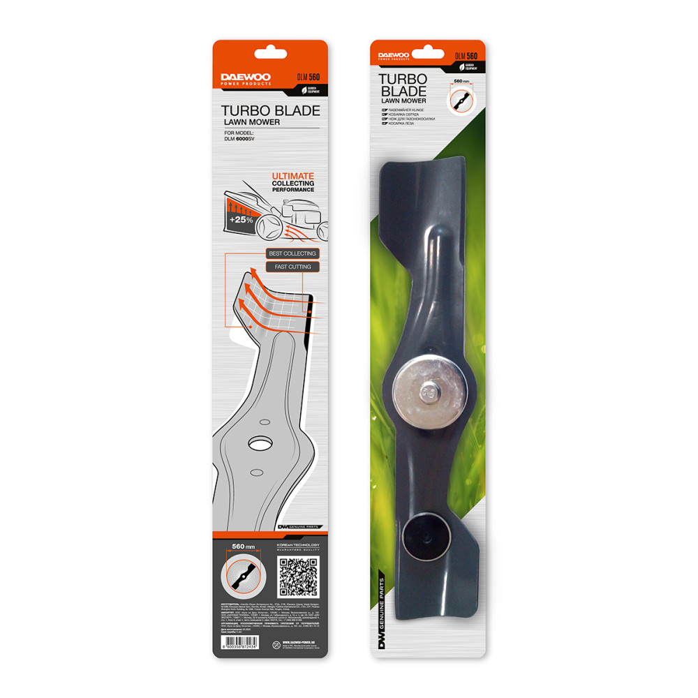 - Специальная изогнутая форма ножа и лопастей создают вихревой поток, затягивающий траву
