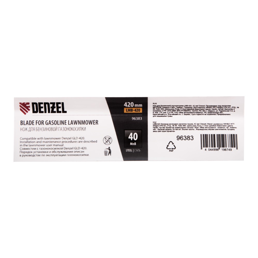 Нож Denzel 96383 длиной 42 см — сменный режущий элемент для бензиновой газонокосилки GLD-420. Используется для скашивания травы на дачных газонах, кортах, а также для ухода за садовыми и парковыми территориями. Эффективно срезает траву, особенно удобен для работы на небольших участках, например, ограниченных строениями или деревьями. Нож для газонокосилки пригодится владельцам дачных участков и работникам коммунальных служб.ПреимуществаДолговечность — нож из прочной стали 40MnB выдерживает динамические нагрузки.Устойчивость к износу — режущая кромка ножа закалена до твердости 40-45 HRC.Защита от разрушения — на нож нанесено антикоррозийное покрытие.