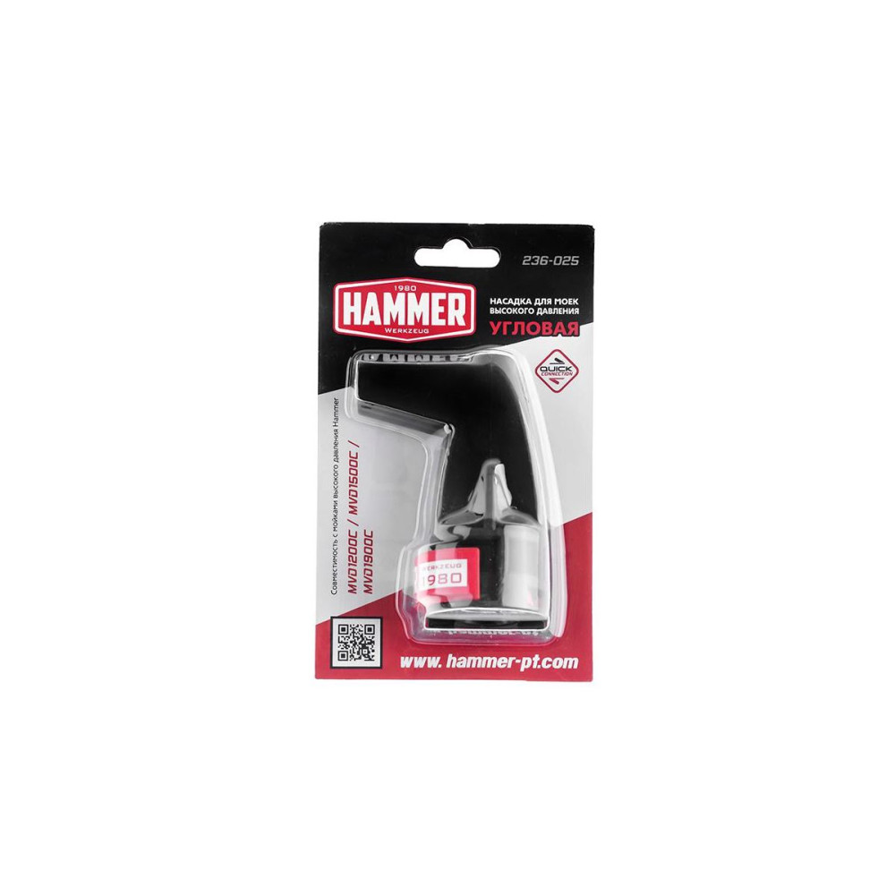 - Угловая насадка HAMMER 236-025 предназначена для использования с мойками высокого давления HAMMER. Предназначена для очистки труднодоступных мест - днищ автомобиля, щелей между постройками и т.д.