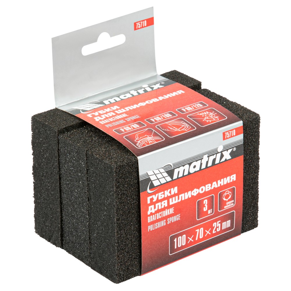 Губка для шлифования, 100 х 70 х 25 мм, средняя жестк, 3 шт, P 60/80, P 60/100, P 80/120 Matrix