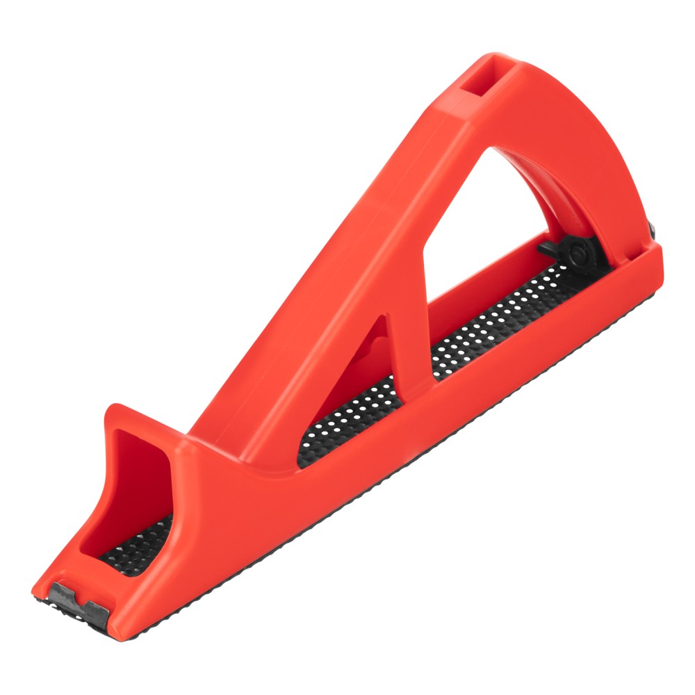 Пластмассовый обдирочный рубанок Matrix 879085 с размером подошвы 250 х 42 мм используется при проведении отделочных работ и предназначен для выравнивания кромок плит из гипсокартона, пластмассы, фибергласа и мягкой древесины. Такая обработка облегчает стыковку элементов отделки и повышает качество отделки. Инструмент имеет удобную рукоятку и весит 235 г, поэтому работа с ним не приводит к усталости.ПреимуществаКорпус рубанка изготовлен из ударопрочного ABS-пластика, поэтому устойчив к деформациям и долговечен.В рабочем полотне предусмотрены отверстия для вывода стружки, что обеспечивает инструменту хорошую производительность и повышает качество работ.Полотно является съемным, и в случае изнашивания его легко можно заменить.