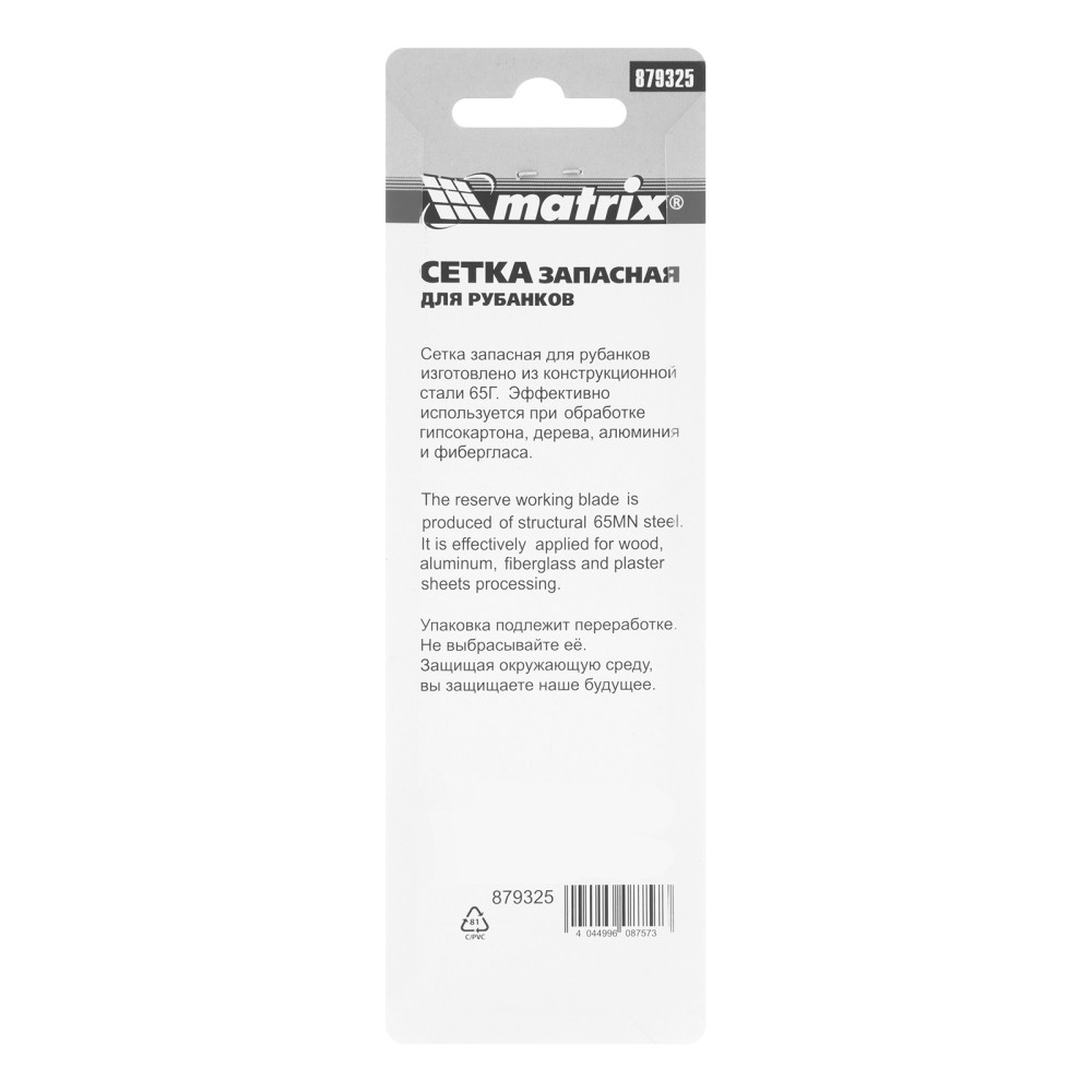 Запасная сетка Matrix 879325 размером 140 х 40 мм — сменное полотно к рубанкам для гипсокартона 87906, 87910. Используется для выравнивания кромок гипсокартонных листов, а также для обработки фибергласовых, пластмассовых и деревянных поверхностей. Будет полезна во время ремонтных и отделочных работ.ПреимуществаПростая установка — сетка крепится к рубанку при помощи зажимов.Высокая производительность — в полотне имеются отверстия для удаления стружки.Удобная упаковка — сетка поставляется в блистере, что позволяет осмотреть ее перед покупкой.