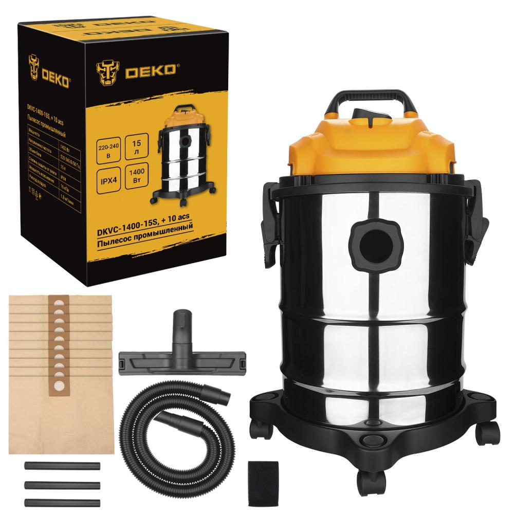 - Пылесос промышленный DEKO DKVC-1400-15S с 10 мешками для пыли предназначен для удаления пыли и других взвешенных частиц из абразивоструйных камер, а также для совместной эксплуатации с оборудованием, предназначенным для сбора и рекуперации абразивного материала.
