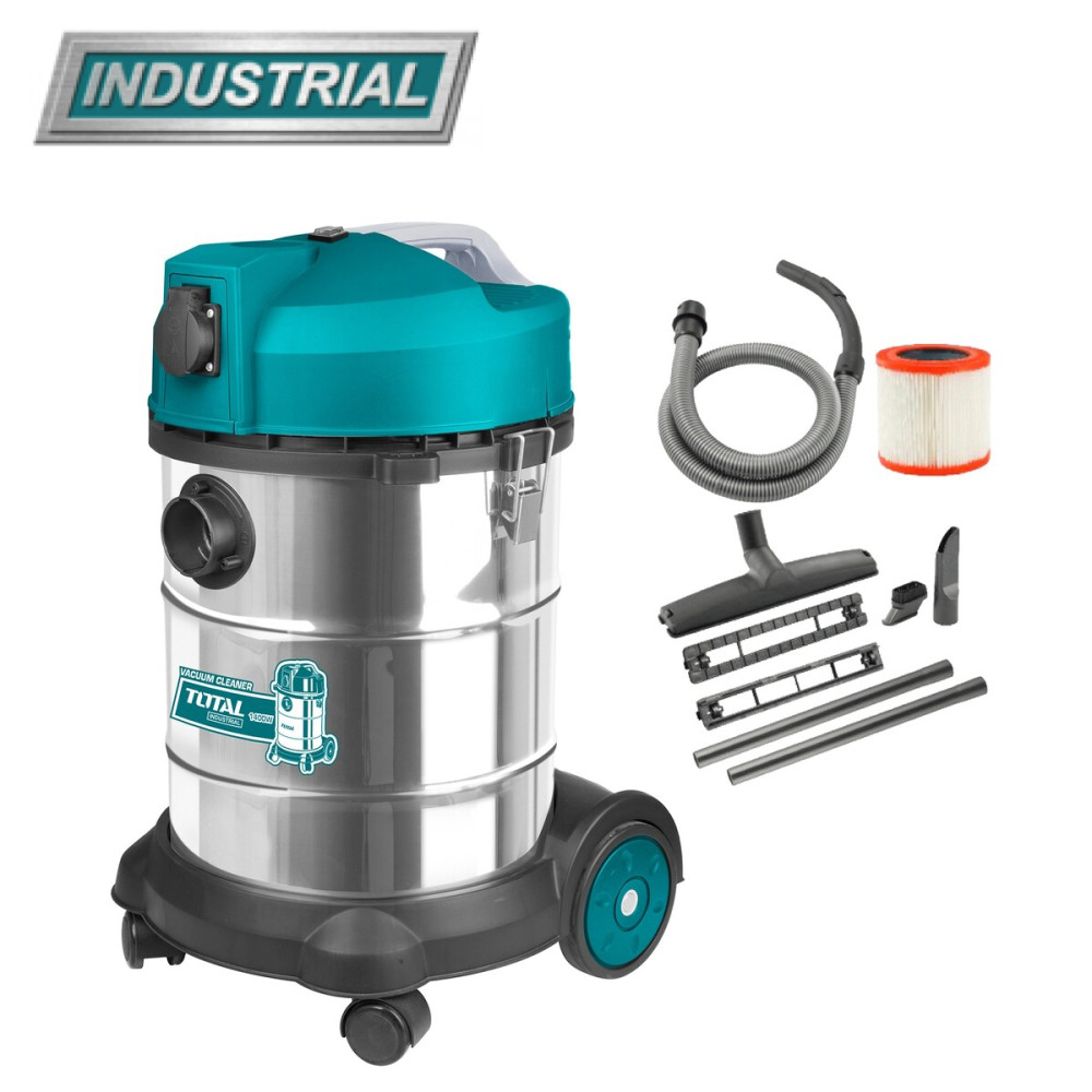 - TOTAL TVC14301 - популярная модель технического пылесоса, предназначенная для сбора строительной пыли: уборки бетонной пыли, древесных опилок, стружки металла, мельчайших осколков и другого строительного мусора.