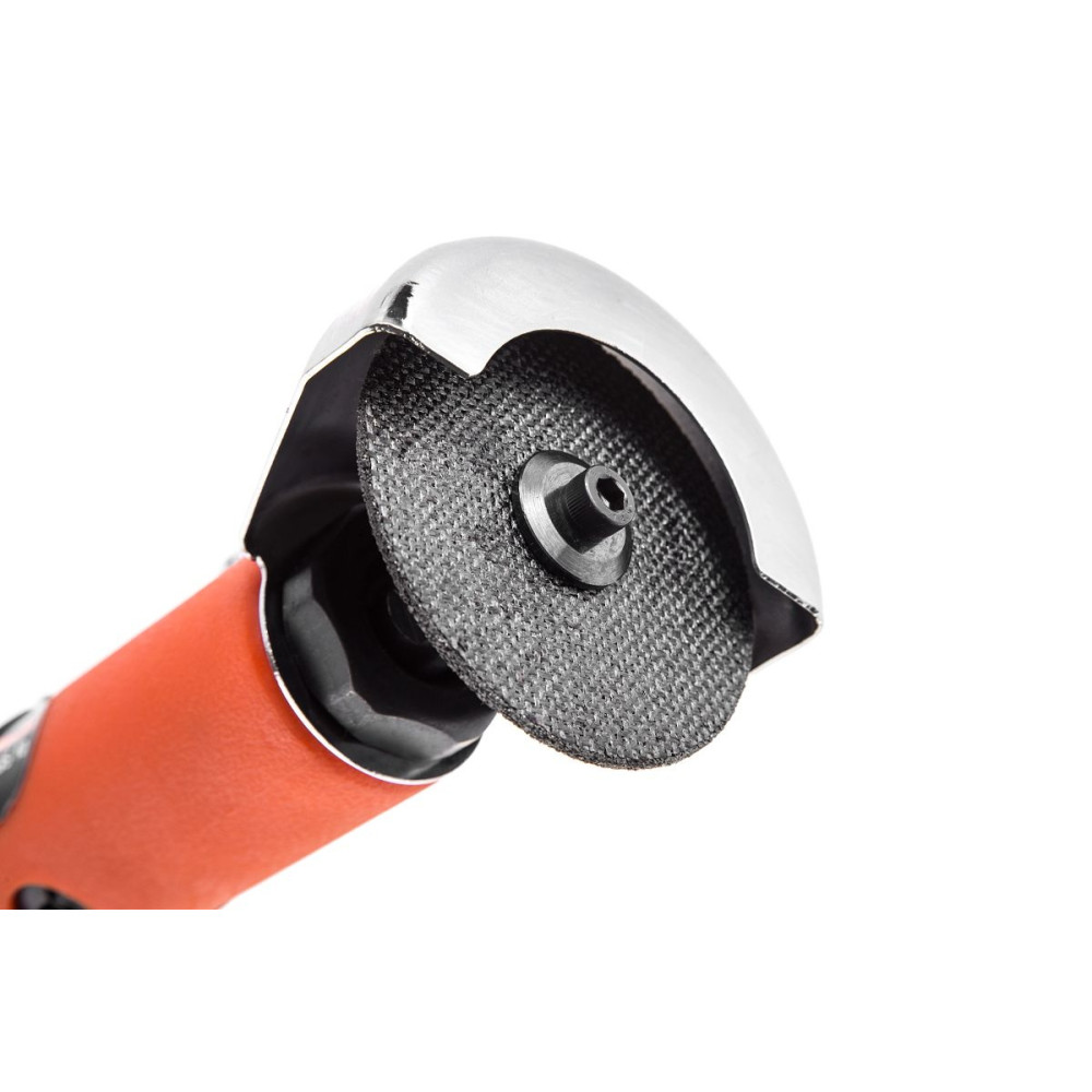 - Защитный кожух закрывает половину диска. Надёжно защищает пользователя от летящих искр, пыли и осколков.