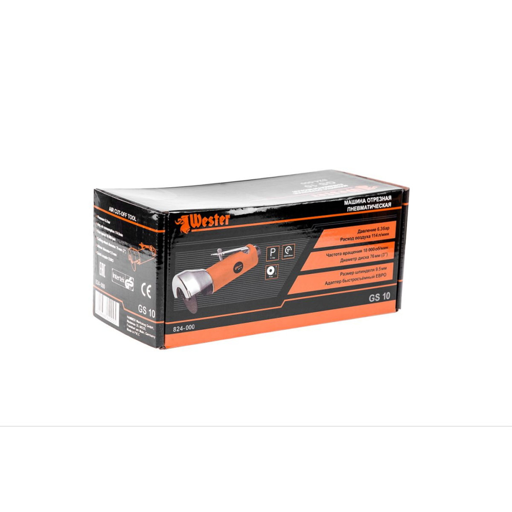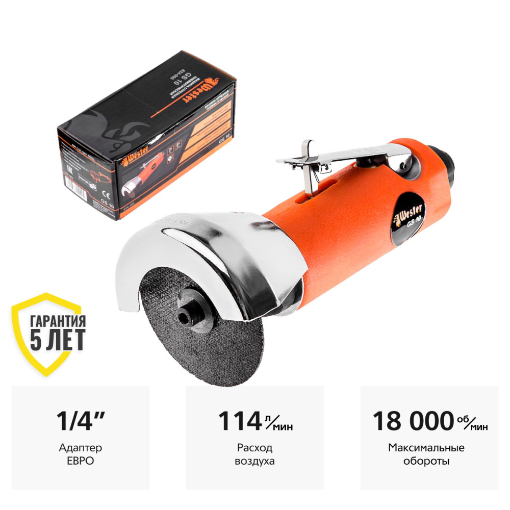 - WESTER GS-10 - компактный пневматический инструмент для высокоточных отрезных работ. Совместим с абразивными дисками диаметром до 76 мм. Благодаря малым габаритам и лёгкости, с инструментом удобно работать в труднодоступных местах.