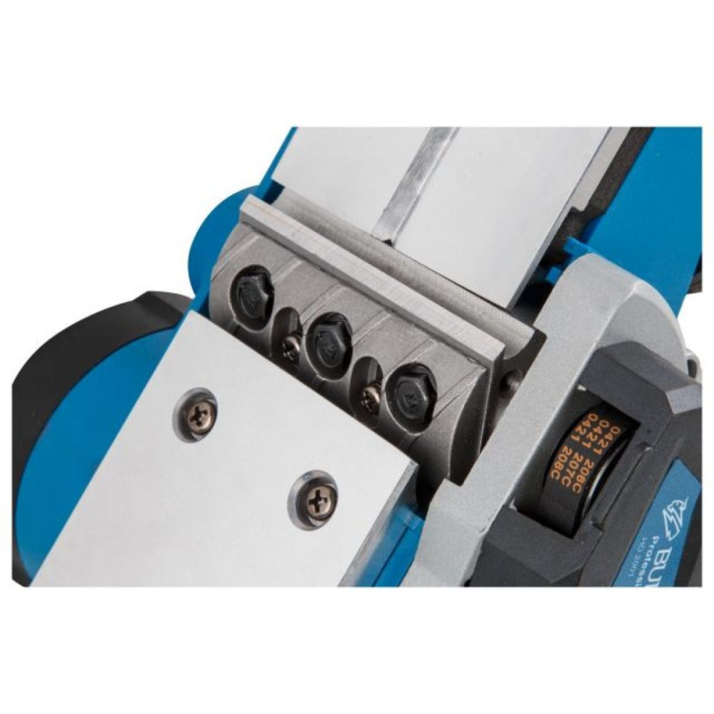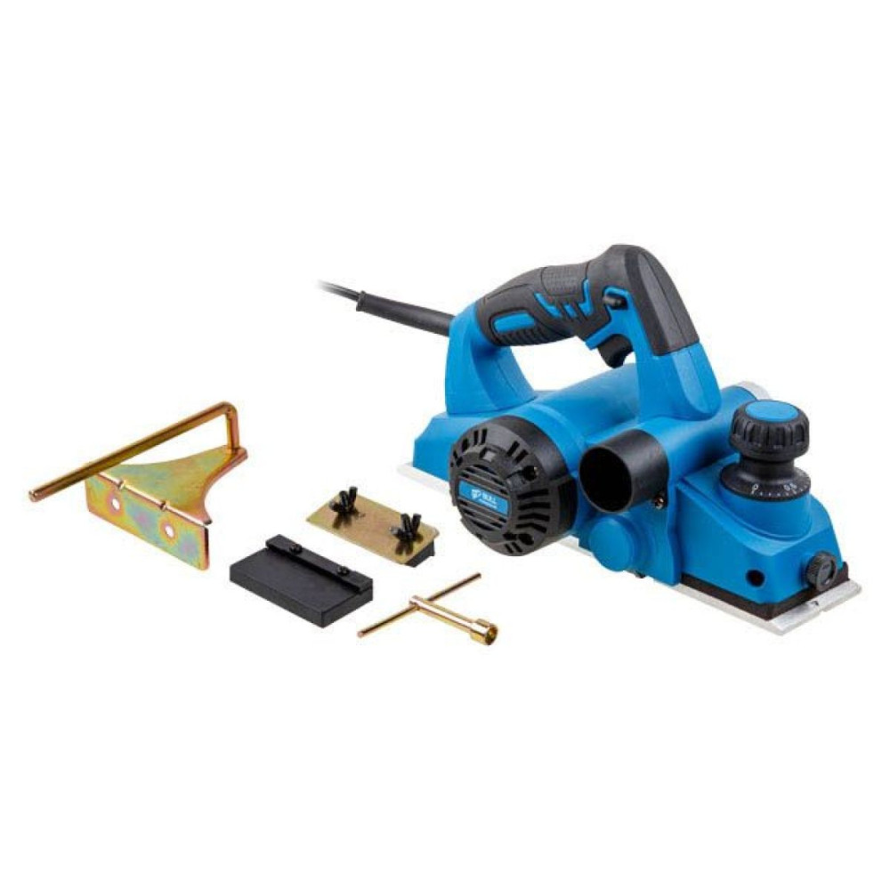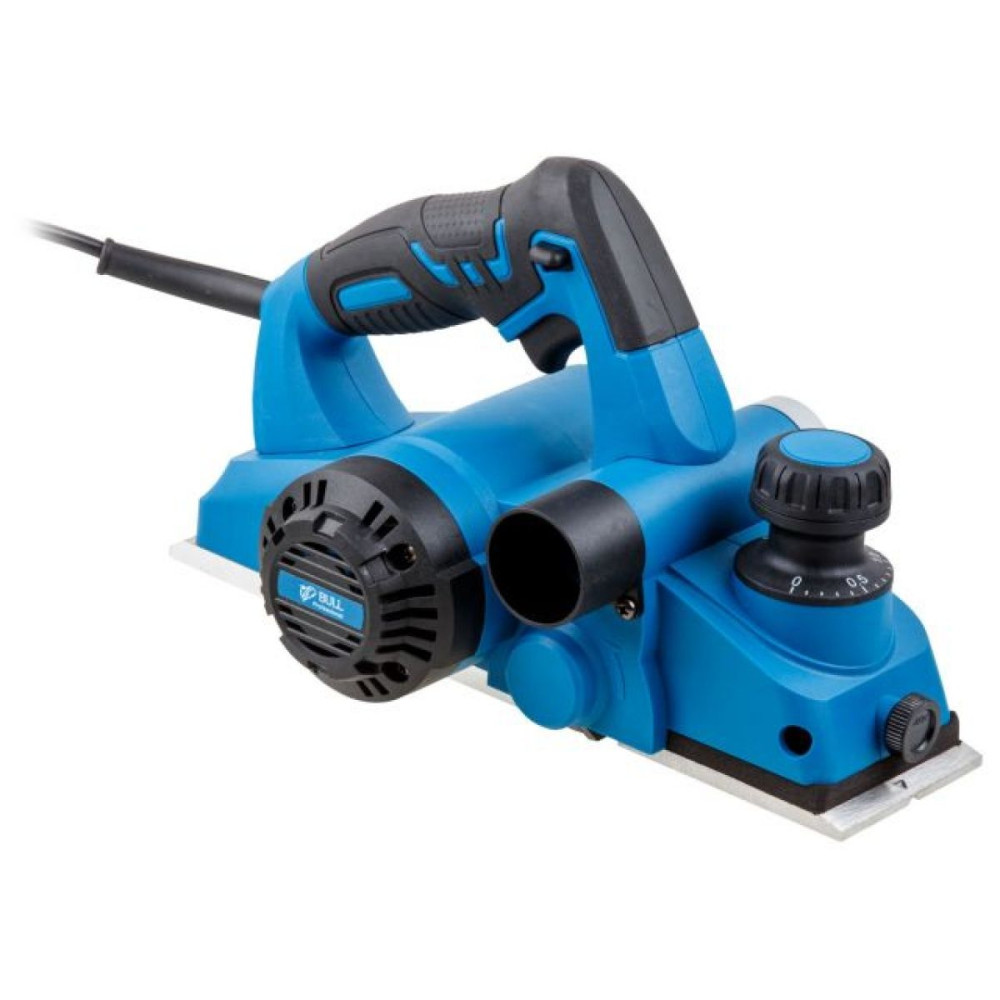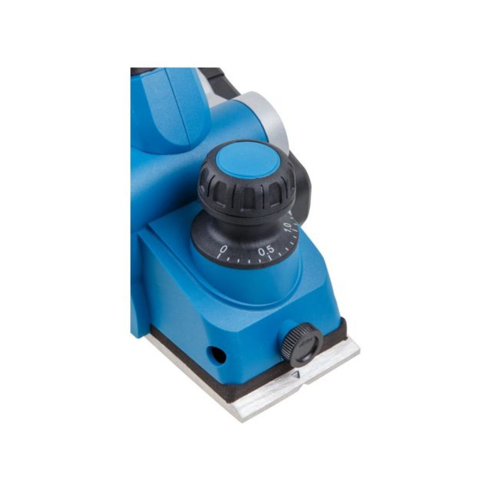 Рубанок отличается глубиной строгания до 2 мм, низким уровнем шума, мощным двигателем 850 Вт, позволяющим осуществлять чистое строгание. Модель оснащена алюминиевой подошвой, одним пазом для съема фаски. Для безопасности пользователя предусмотрена блокировка кнопки включения. Удобству в эксплуатации способствует обрезиненная рукоятка, мягкий резиновый кабель 2 м.