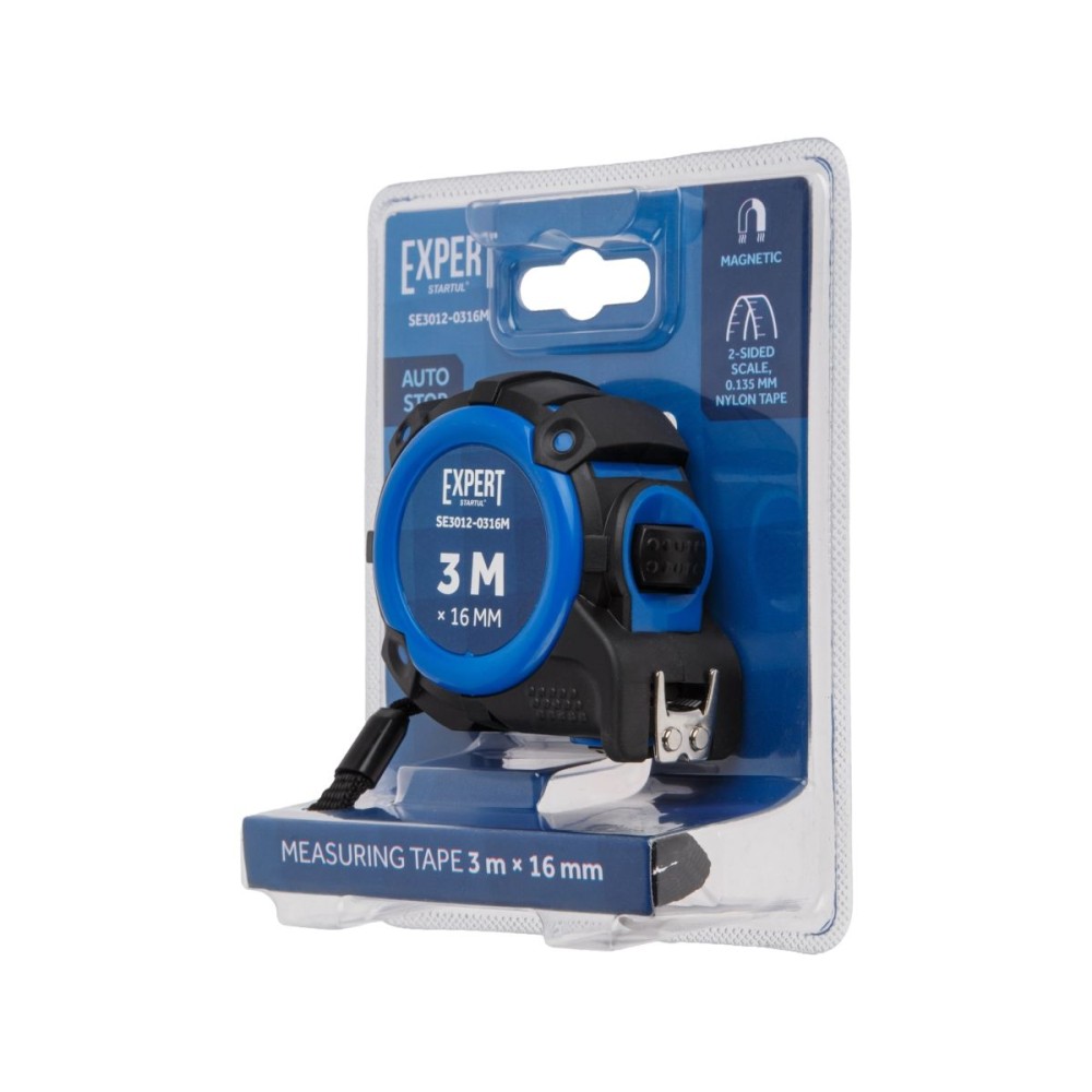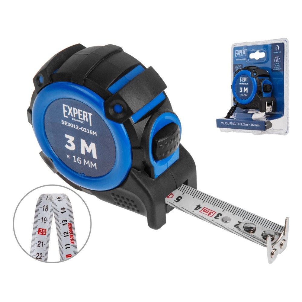 с функцией автостоп, двусторонняя шкала нанесения, нейлоновое покрытие, магнитный обрезиненный двусторонний зацеп,