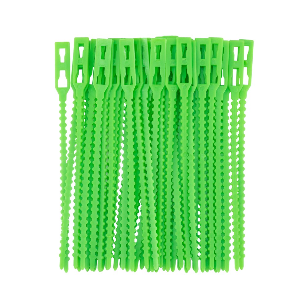 Пластиковые подвязки Palisad 64494 длиной 13 см, 50 шт., используются для садовых растений. Они обеспечивают бережную поддержку ветвей и стеблей с помощью колышков при плодоношении. Подвязанные растения получают больше солнечного света, плоды не соприкасаются с землей, поэтому защищены от вредителей.ПреимуществаПодвязки прослужат долгое время, т.к. выполнены из прочного ABS-пластика.За счет специальной конструкции замка подвязки подходят для многократного использования в течение нескольких сезонов.50 подвязок в комплекте хватит на несколько грядок.
