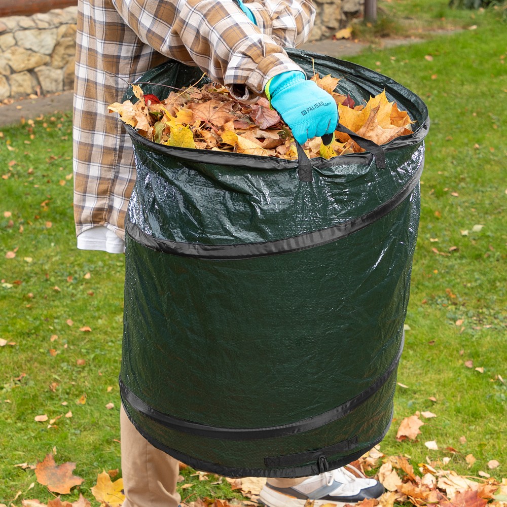 Складной садовый контейнер с ручками Palisad 64499 вместимостью 160 л используется для уборки опавших листьев, срезанных веток и другого садового мусора. Поможет привести в порядок дачный участок или придомовую территорию.ПреимуществаБыстрая подготовка к работе — контейнер имеет самораскладывающийся стальной каркас.Износостойкость — полиэстер с ПВХ-покрытием устойчив к воздействию влаги, ультрафиолета и перепадов температуры.Удобное перемещение — в верхней части предусмотрены рукоятки.Компактность — размеры контейнера в сложенном виде составляют 560 х 40 мм, а вес — всего 0,62 кг, поэтому его легко хранить и перевозить.