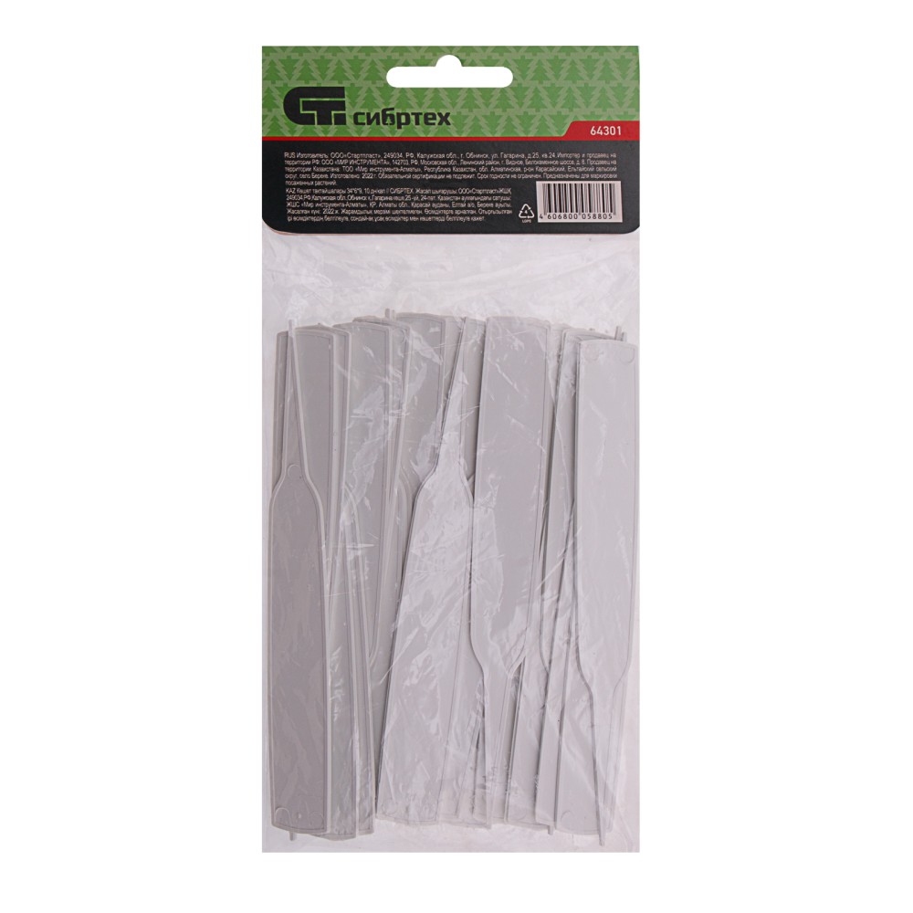 Посадочные таблички Сибртех 64301, 14 х 1,5 см, 25 шт. в упаковке, позволяют организовать порядок на садовом и огородном участке и выделить необходимую информацию о посадках. Также их можно использовать в квартире для маркировки комнатных растений или рассады. Информацию на таблички можно наносить спиртовым маркером или простым «мягким» карандашом.ПреимуществаИнформация на табличках не стирается и не смывается, т.к. они изготовлены из ABS-пластика, устойчивого к любым погодным условиям.Таблички оснащены колышками с острым наконечником для легкого проникновения в почву.25 табличек в комплекте хватит на небольшой огород.