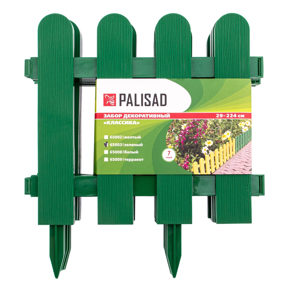 Декоративный забор Palisad «Классика» 65003 зеленого цвета, размером 29 х 224 см, состоит из 7 секций и позволяет выделить отдельные участки придомовой или дачной территории. Используется для декоративного оформления цветников, ограждения дорожек, грядок и газонов.ПреимуществаУниверсальность — забор позволяет создавать участки любой формы, от простой до сложной.Долговечность — забор из прочного полипропилена не боится солнца, осадков и температурных перепадов.Быстрая установка — достаточно погрузить заостренные ножки в почву и соединить секции между собой.