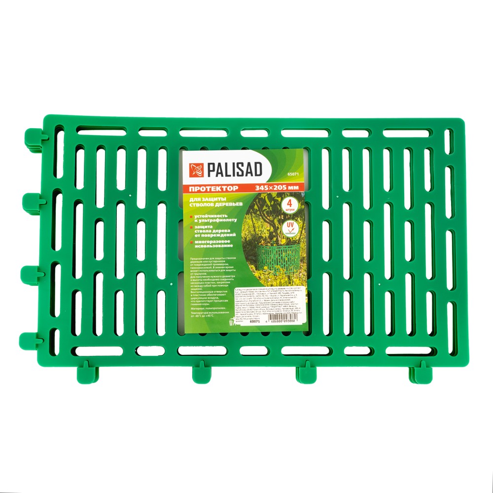 Протектор Palisad 65071 зеленого цвета представляет собой комплект из 4 секций размером 36 х 21,7 см, толщиной 1,65 см, и обеспечивает защиту стволов деревьев, а также кустарников, цветов и иных конструкций от повреждения триммером или газонокосилкой. Также служит дополнительным препятствием для грызунов. Протектор пригодится владельцам дачных участков.ПреимуществаДолговечность — протектор из прочного полипропилена устойчив к воздействию ультрафиолета и осадков, подходит для многоразового применения.Неприхотливость — изделие можно использовать при температуре от -30 °С до +50 °C.Надежное соединение — секции скрепляются между собой при помощи крепких замков-защелок.Деформационная стойкость — геометрические пропорции секций сохраняются на протяжении всего срока использования и независимо от времени года.