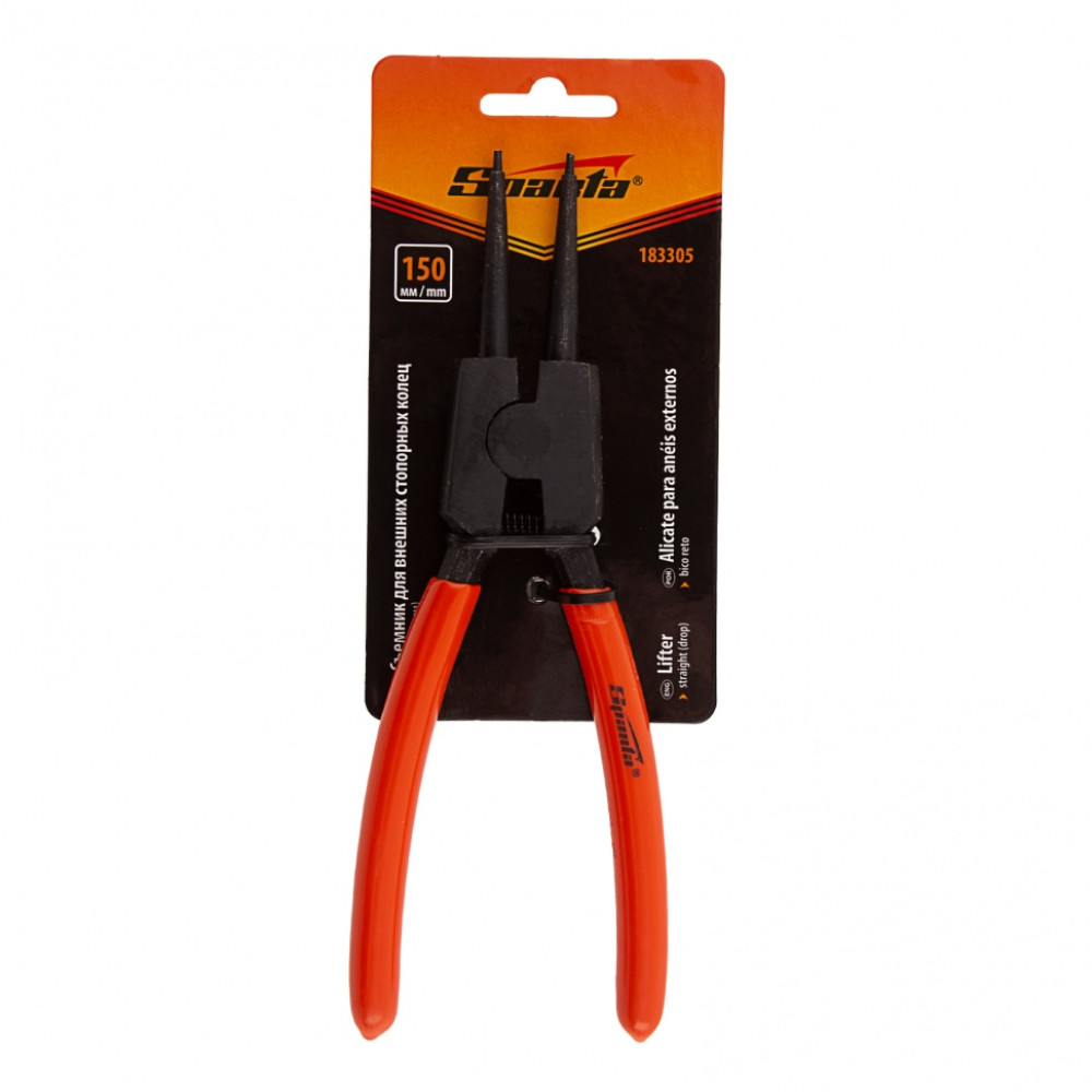 Прямой съемник Sparta 183305 длиной 150 мм — монтажный инструмент, работающий на разжим и использующийся для установки и снятия внешних стопорных колец с отверстиями. Благодаря продуманной конфигурации наконечники съемника надежно удерживают проушины кольца. Инструмент будет полезен мастерам по ремонту бытовой техники или автомобилей, а также пригодится в домашнем хозяйстве.