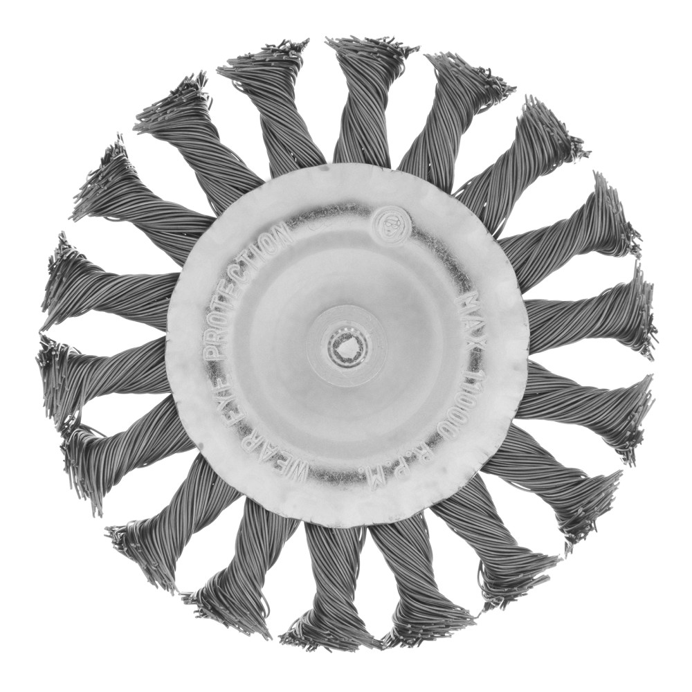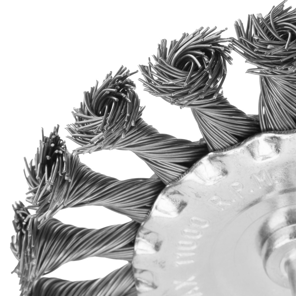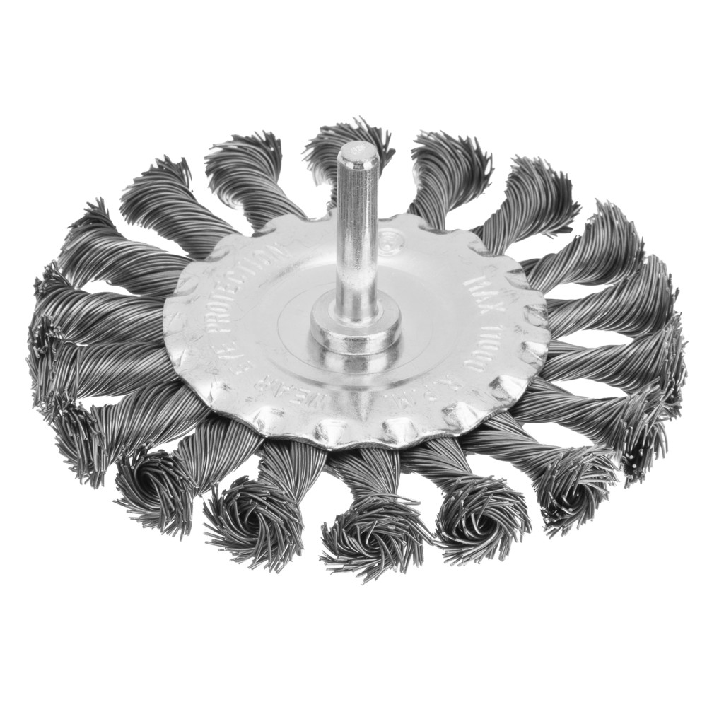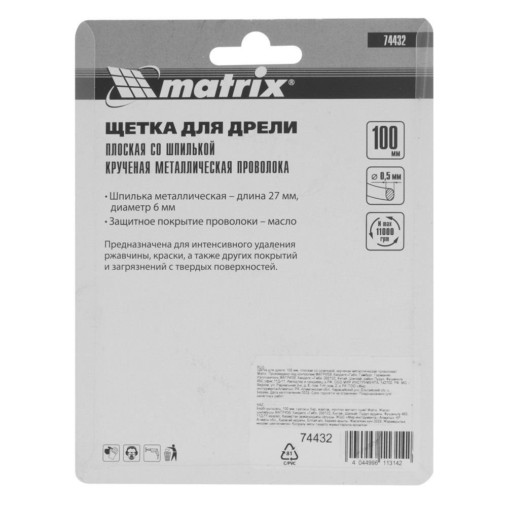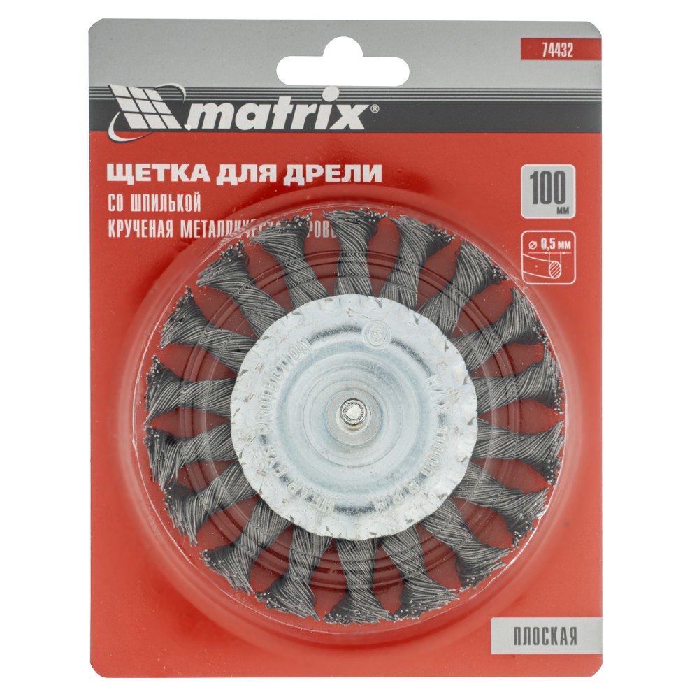 Плоская щетка со шпилькой для дрели Matrix 74432 диаметром 100 мм, с щетиной из крученой металлической проволоки, позволяет быстро очистить металлическую, деревянную или бетонную поверхность от загрязнений, ржавчины, старой краски или лака. Используется для обработки внутренних углов, пазов, изгибов, узких и труднодоступных мест. Подходит для очистки сварных швов. При помощи хвостовика диаметром 6 мм щетку устанавливают в патрон дрели или ПШМ с максимальной частотой вращения до 11000 об/мин. Насадка применяется в строительстве, машиностроении, пригодится также в быту. Во время работы со щеткой следует использовать средства индивидуальной защиты.ПреимуществаЭффективность и износостойкость — щетина из крученой стальной проволоки диаметром 0,5 мм успешно справляется с толстым слоем ржавчины или лакокрасочного покрытия.Защита от коррозии — корпус оцинкован, щетина покрыта масляной пленкой.Гарантированная надежность — оснастка произведена на крупном заводе под строгим технологическим контролем.