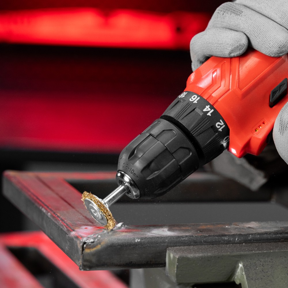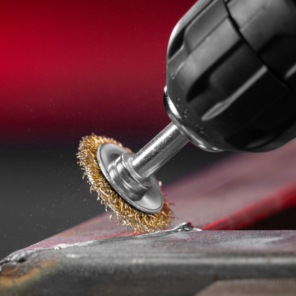 Плоская щетка для дрели Matrix 74440 диаметром 30 мм, со шпилькой и щетиной из латунированной витой проволоки, предназначена для бережной очистки металлических, деревянных, пластиковых поверхностей от загрязнений, старых лакокрасочных материалов и ржавчины. Витая проволока диаметром 0,3 мм проникает в труднодоступные места: пазы, углы, изгибы, узкие участки. Насадку применяют для придания поверхности нужной шероховатости или подчеркивания структуры материала. Хвостовик диаметром 6 мм устанавливается в патрон электродрели, способной работать на рекомендуемой скорости 4500 об/мин. Во время работы следует использовать защитные очки, респиратор, наушники, спецодежду и обувь.ПреимуществаПрочность и долговечность — щетина изготовлена из высококачественной стальной проволоки.Защита от разрушения — корпус оцинкован, щетина латунирована для защиты от коррозии.Гарантированная надежность — оснастка произведена на крупном заводе под строгим технологическим контролем.Широкая область применения — щетка пригодится на строительной площадке, на производственном предприятии, а также будет полезна в быту.