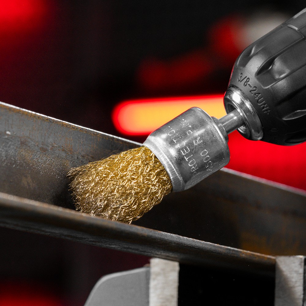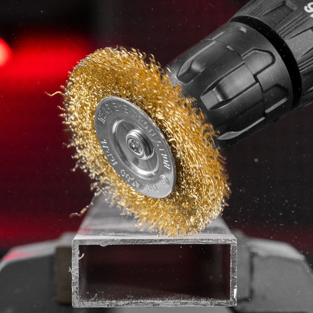 Набор щеток со шпильками Matrix 74492 (две плоские диаметром 50-75 мм и три «чашки» диаметром 25-50-75 мм) включает насадки на дрель, предназначенные для щадящей обработки поверхностей различной площади. Рекомендованная скорость вращения — не более 4500 об/мин. Плоские щетки оптимальны для зачистки труднодоступных мест, углов и изгибов, а «чашки» — для обработки плоскостей. С помощью насадок можно счистить с поверхностей ржавчину, загрязнения и старые лакокрасочные покрытия.ПреимуществаДолговечность — щетина выполнена из высококачественной стальной проволоки.Универсальность — набор подходит для обработки любых твердых поверхностей: древесины, металла, пластика и т.д.Аккуратная работа — щетки с витой щетиной снимают тонкий слой материала.Коррозионная стойкость — корпусы щеток оцинкованы, щетина латунирована.