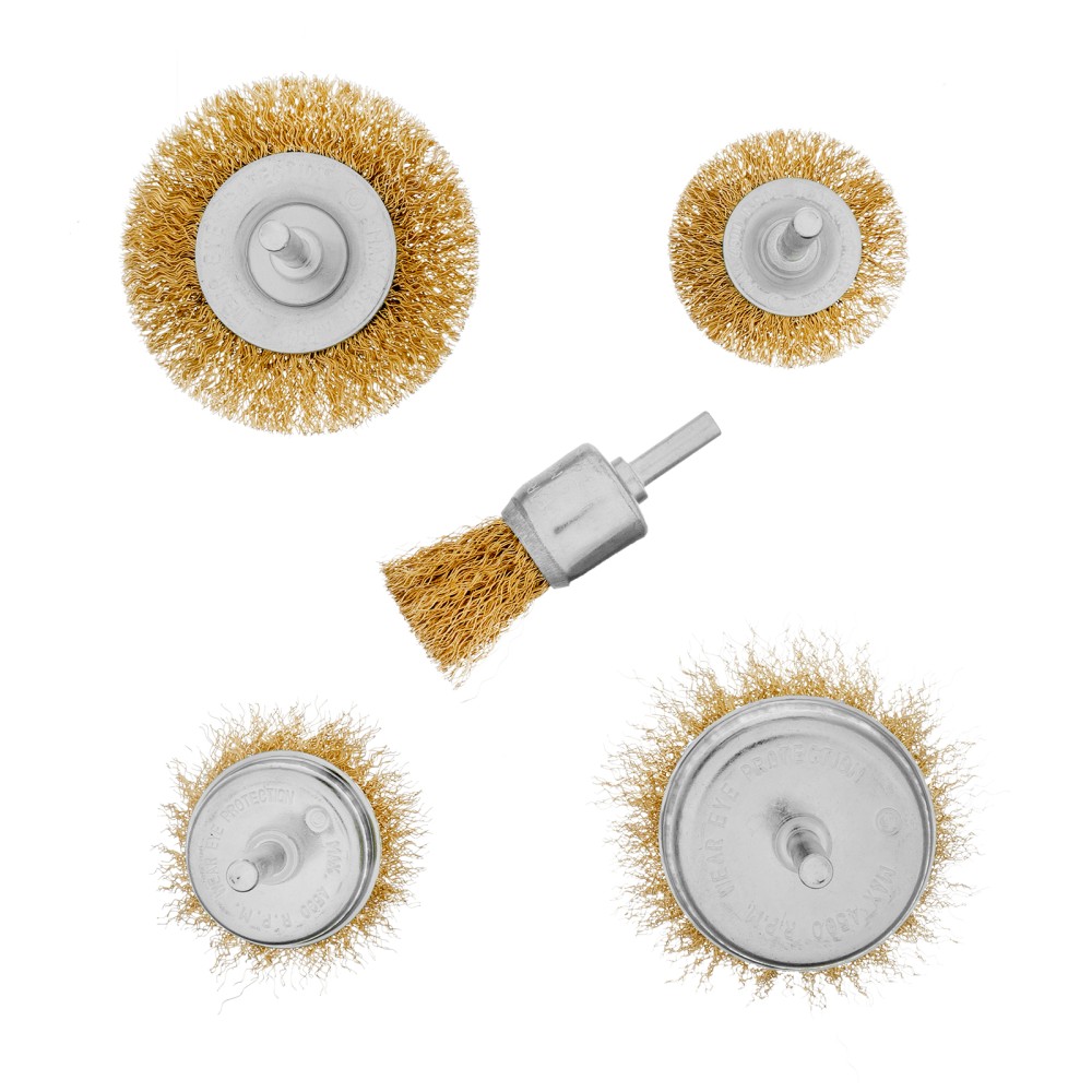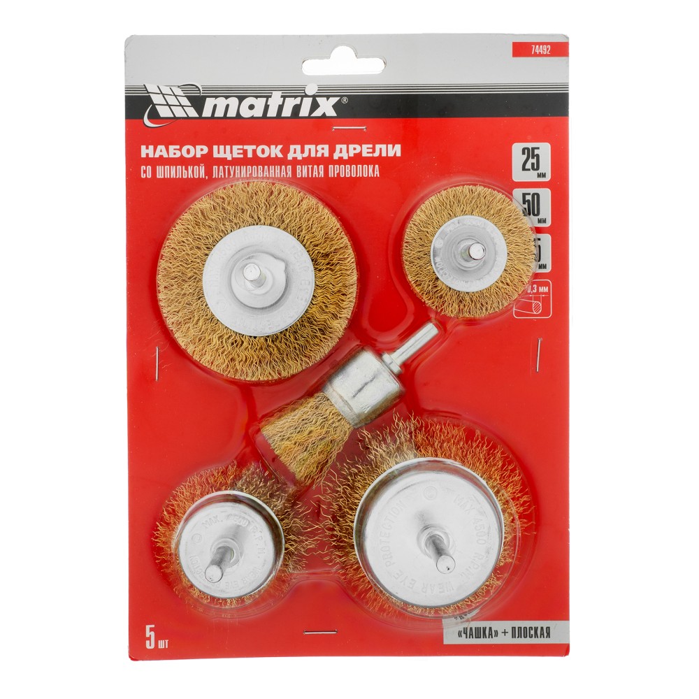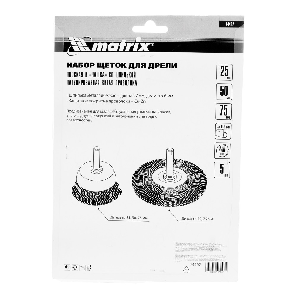 Набор щеток для дрели, 5 шт, 2 плоские, 50-75 мм, 3 "чашки", 25-50-75 мм, со шпильками Matrix