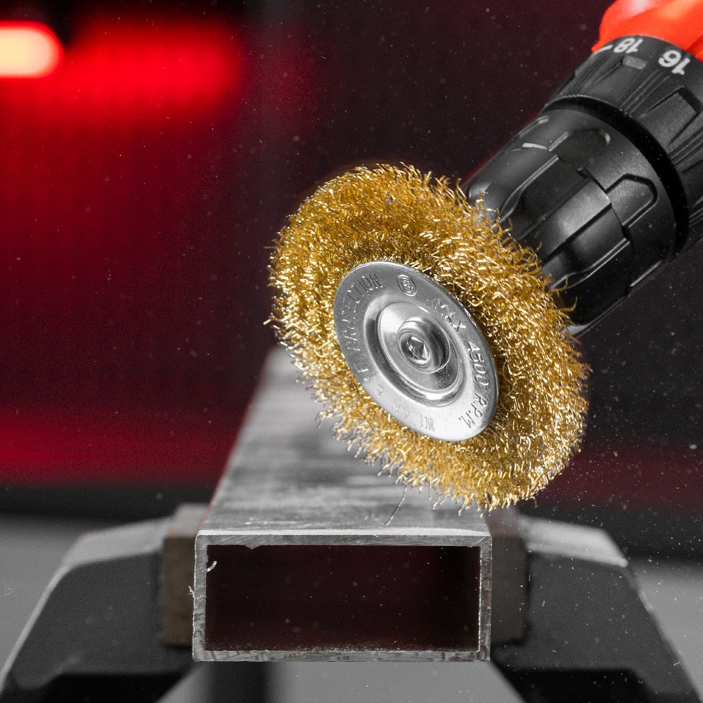 Набор щеток Matrix 74496 со шпильками диаметром 6 мм состоит из 6 насадок для дрели: 5 плоских диаметром 40-50-65-75-100 мм и «чашки» диаметром 50 мм. Они используются на скорости до 4500 об/мин. Плоские щетки удобны для обработки труднодоступных мест, углов и пазов, а чашка оптимальна для ровных поверхностей. Набор пригодится для удаления ржавчины, загрязнений, старых лакокрасочных покрытий.ПреимуществаДолговечность — щетина выполнена из высококачественной стальной проволоки.Универсальность — набор подходит для обработки любых твердых поверхностей: древесины, металла, пластика и т.д.Аккуратная работа — щетки с витой щетиной снимают тонкий слой материала.Коррозионная стойкость — корпусы щеток оцинкованы, щетина латунирована.